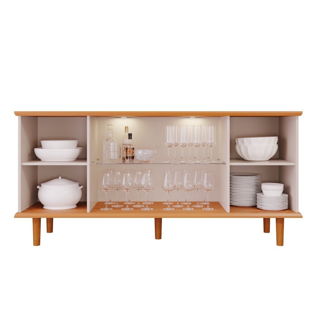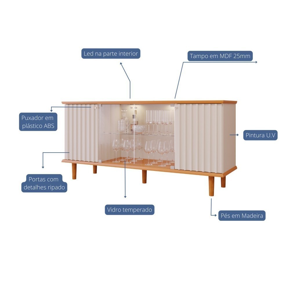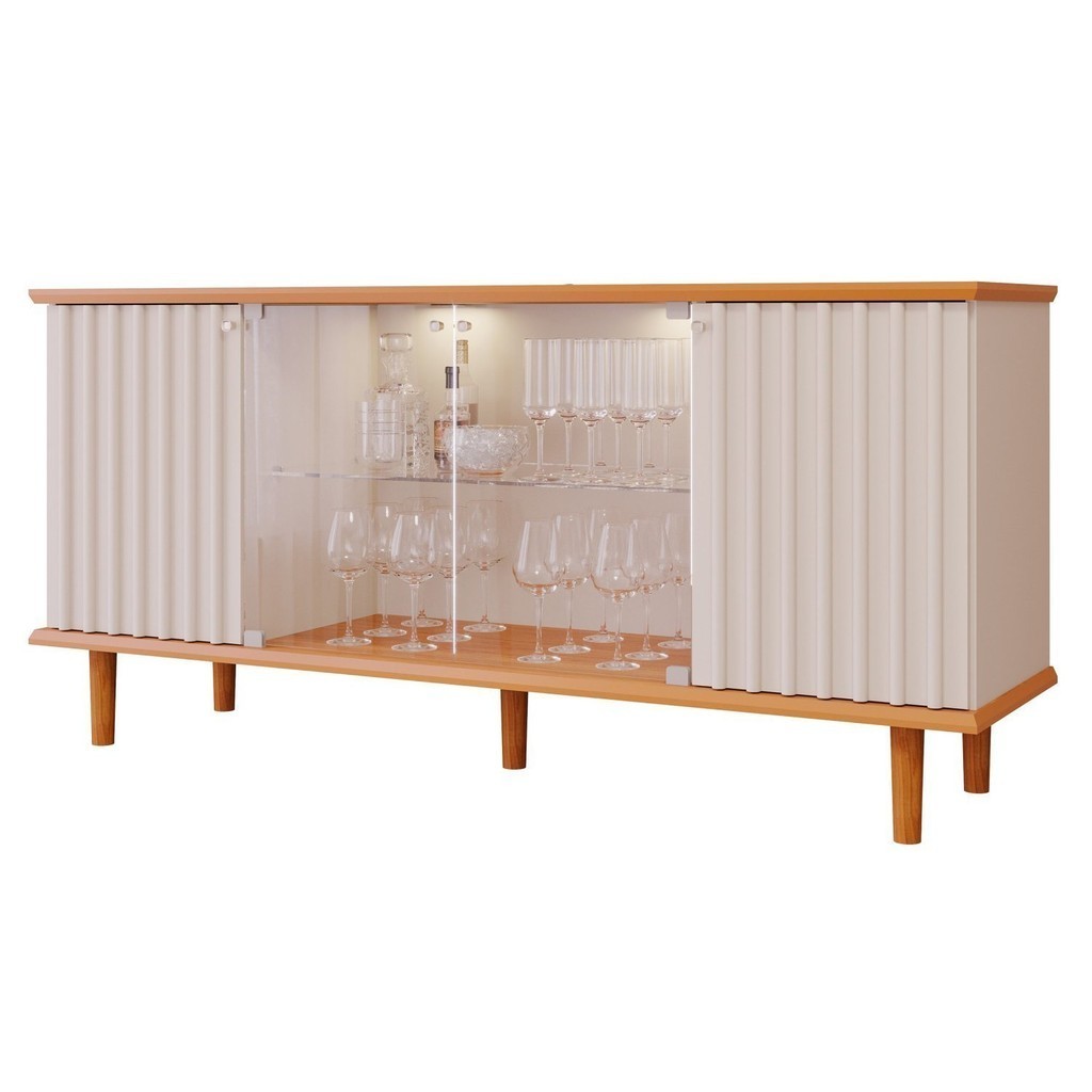 Buffet de Sala de Jantar 4 Portas com LED e Pés em Madeira Maciça Janice Cinamomo/Off White