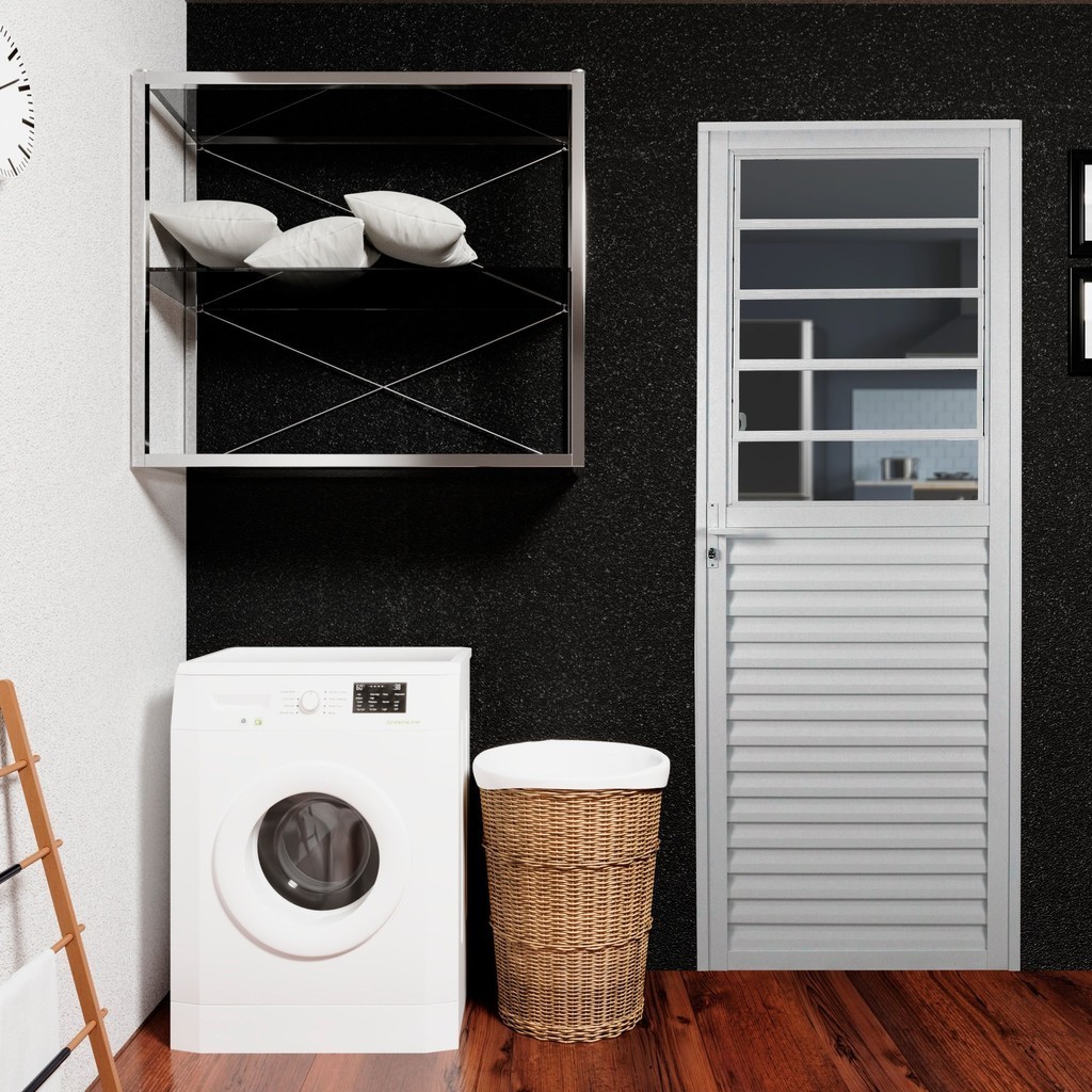 Porta de Alumínio Basculante 210x80cm com Vidro Liso Soft Plus MGM Abertura Esquerda