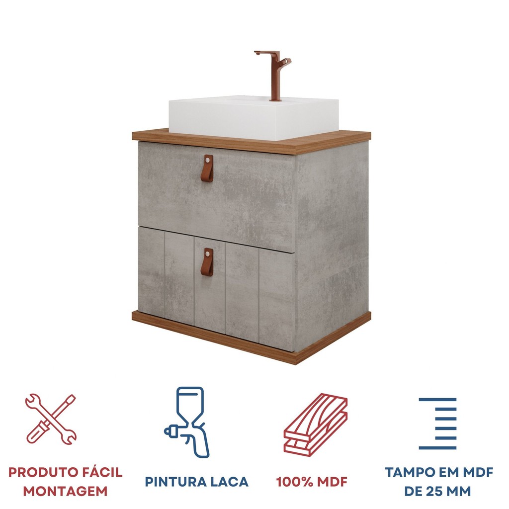 Gabinete Suspenso com Cuba 60cm Poli Espresso Móveis Cimento