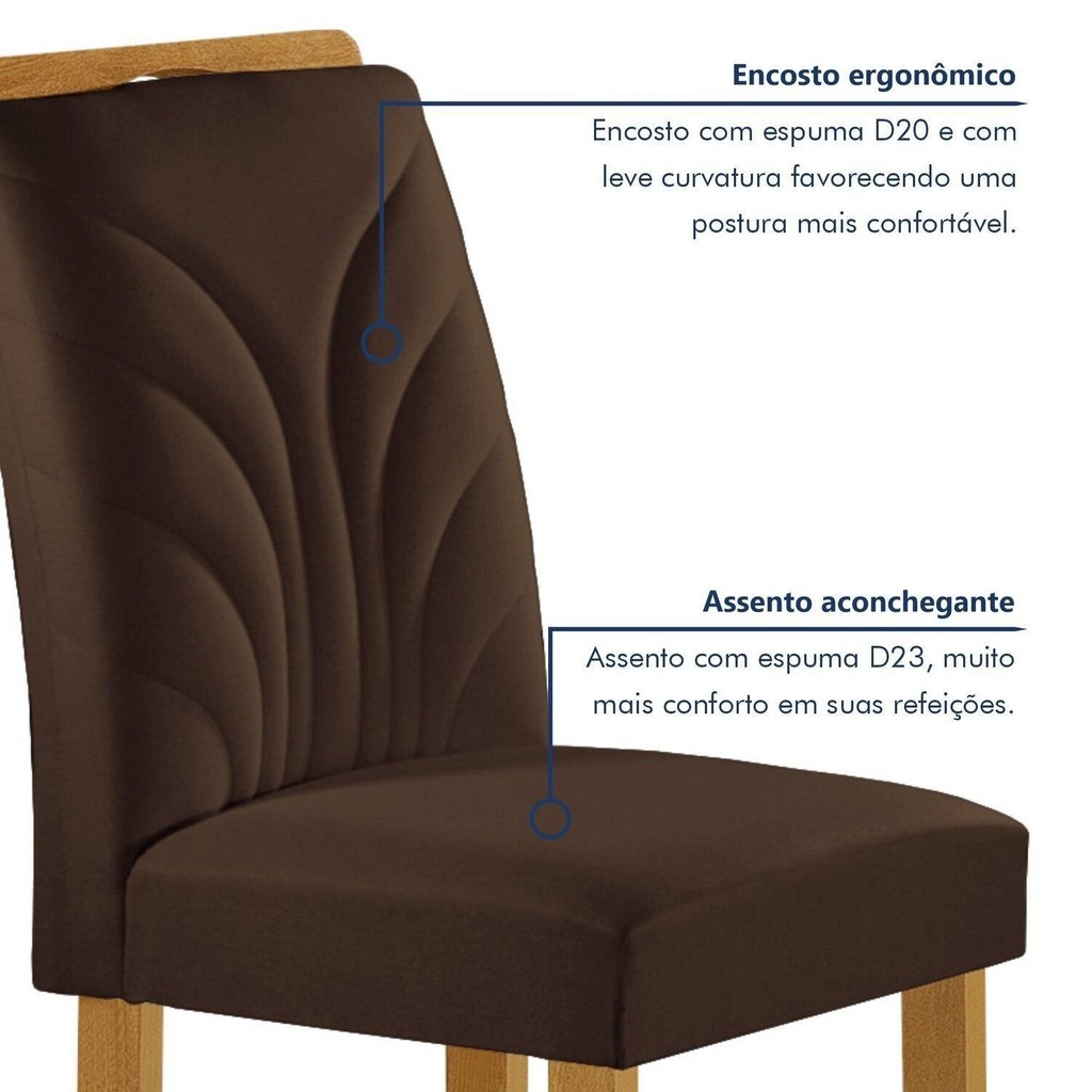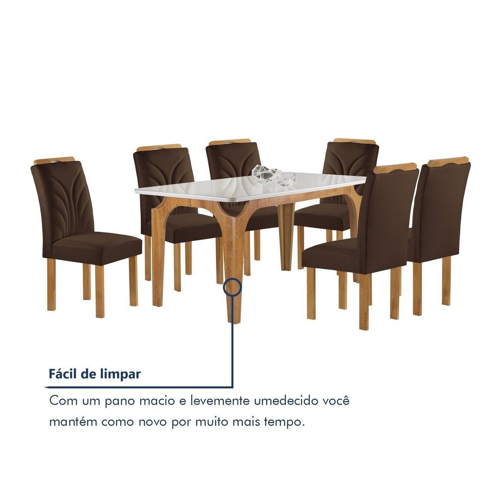 Conjunto Mesa Melina 170cmx90cm com 6 Cadeiras Carolina Tampo Smart Plus com Vidro Cinamomo/Off White/Marrom