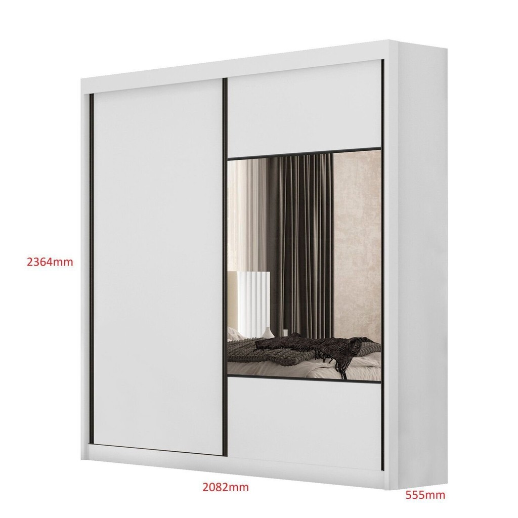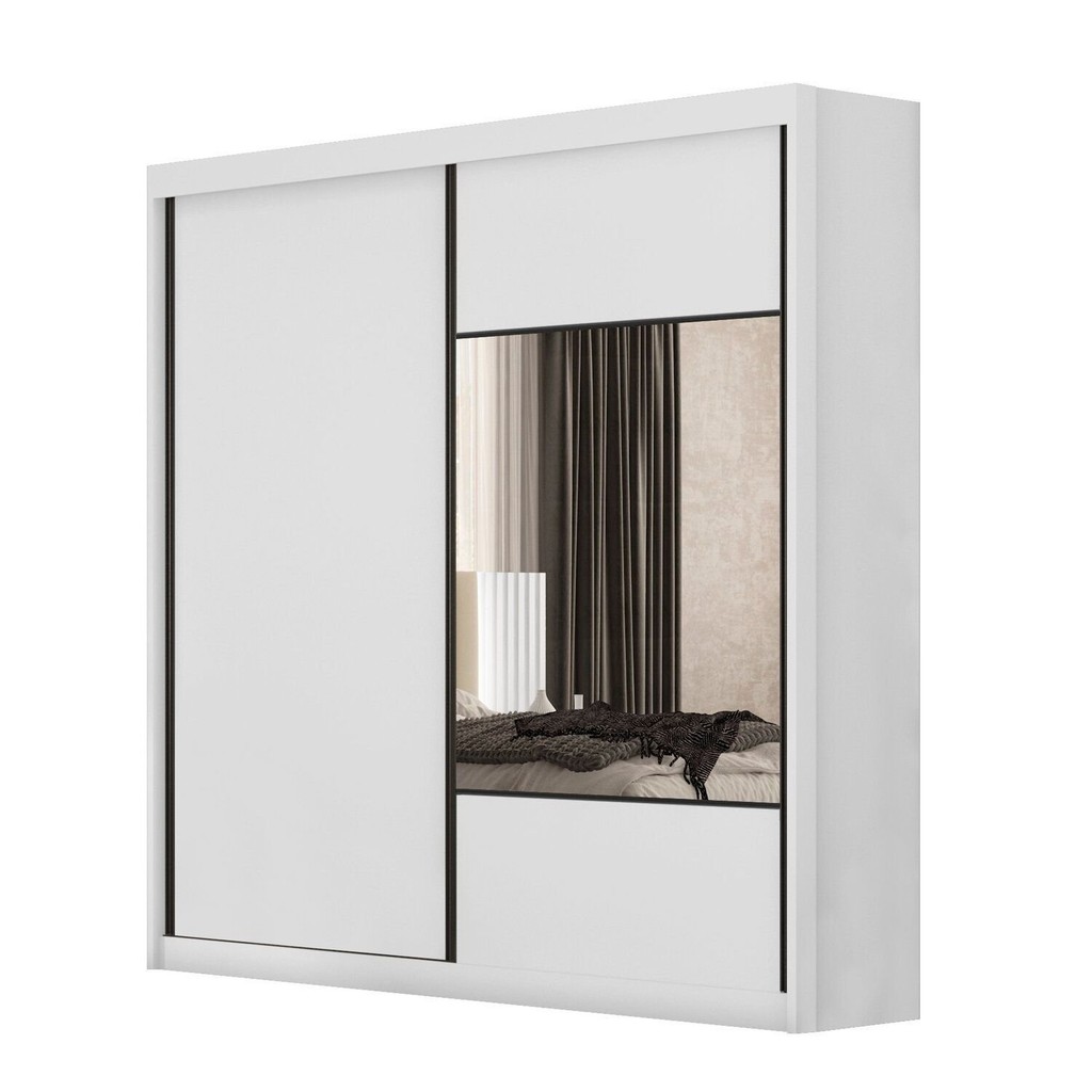 Guarda Roupa Casal 2 Portas 8 Gavetas 100% MDF com Espelho Trieste Neve