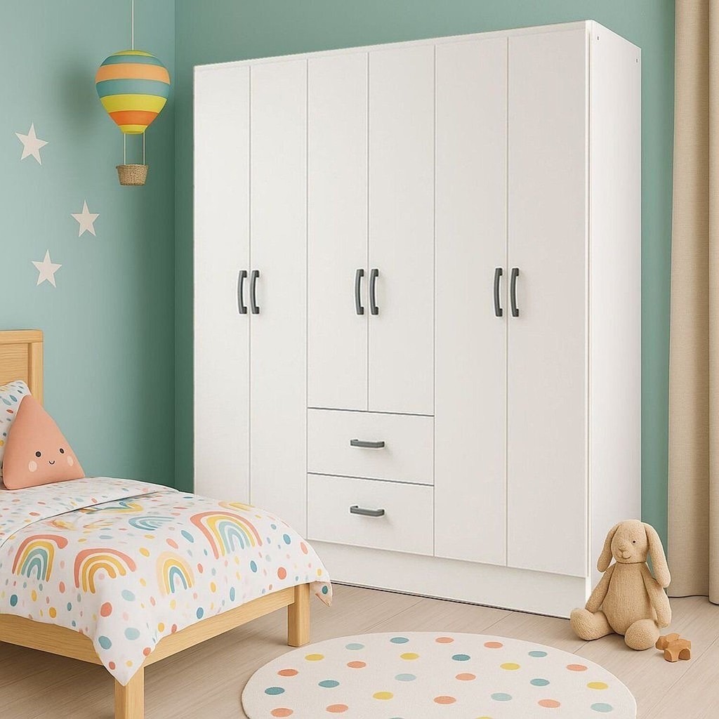 Guarda-roupa Infantil 6 Portas 2 Gavetas 8 Prateleiras 1 Cabideiro Califórnia