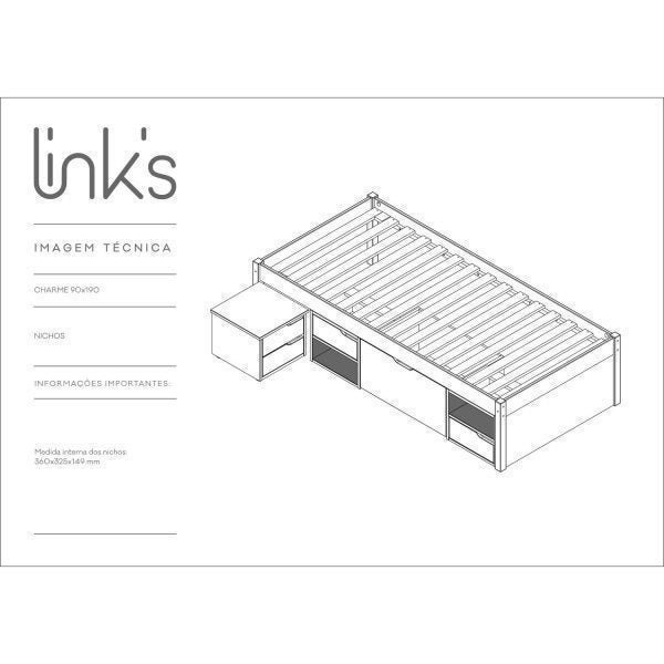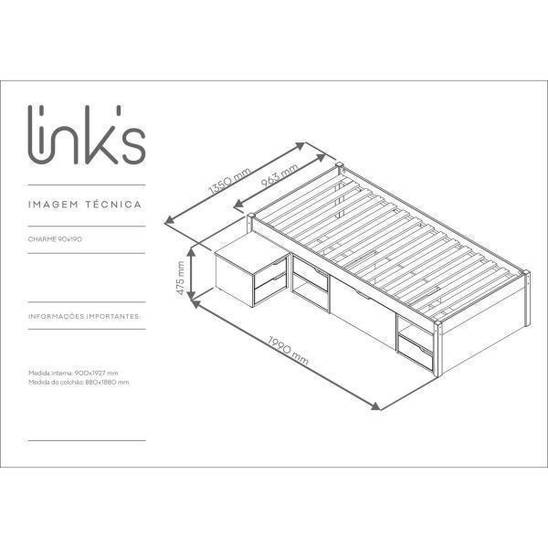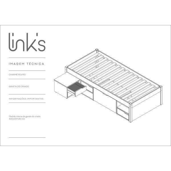 Cama Solteiro com 3 Gavetas e 1 Mesa de Cabeceira Charme Amendoa