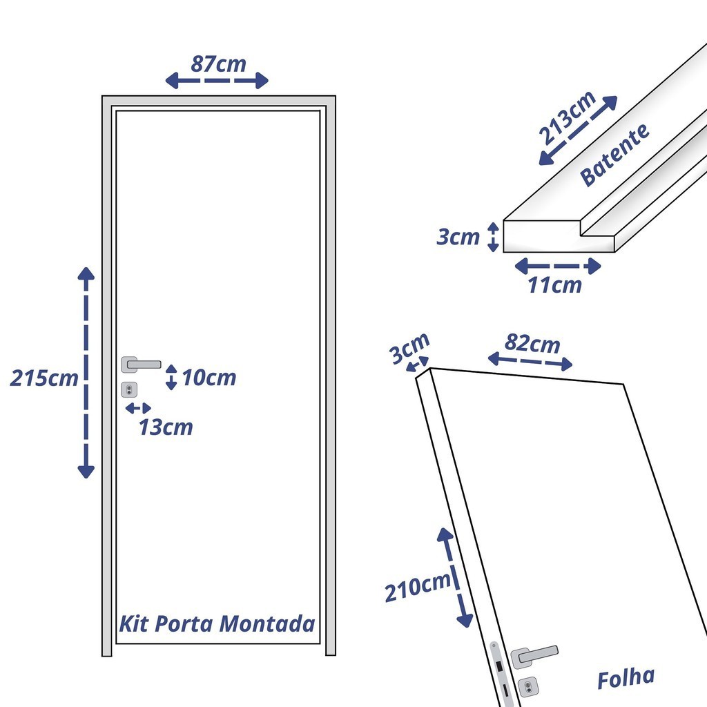 Kit Porta de Madeira 210x82cm Batente 11cm Lisa Padrão Imbuia Uniportas Abertura Direita Direita