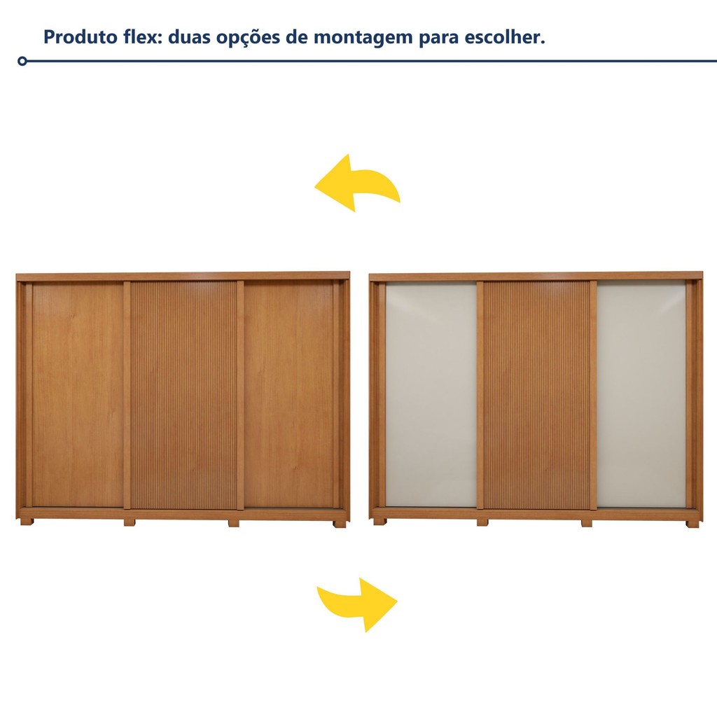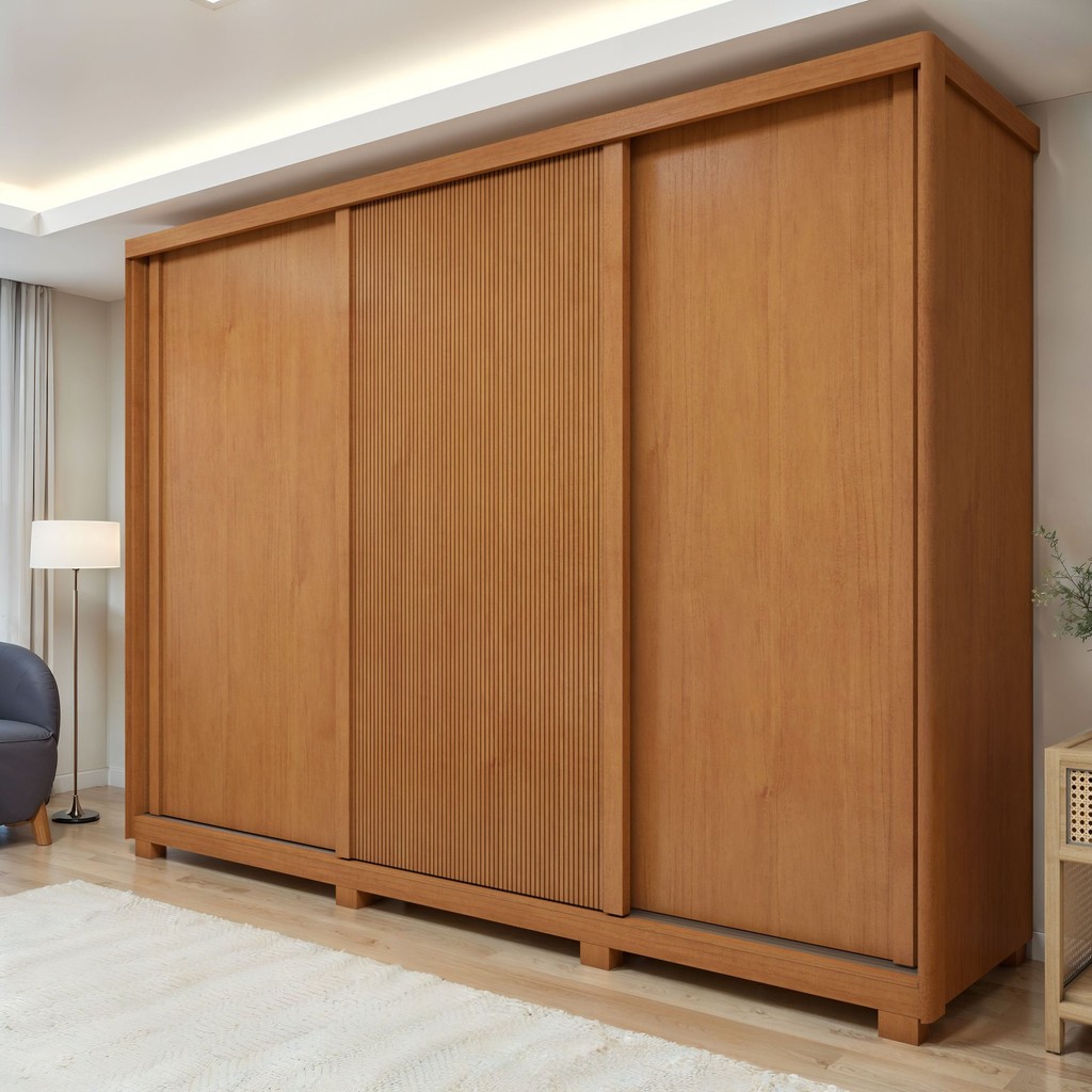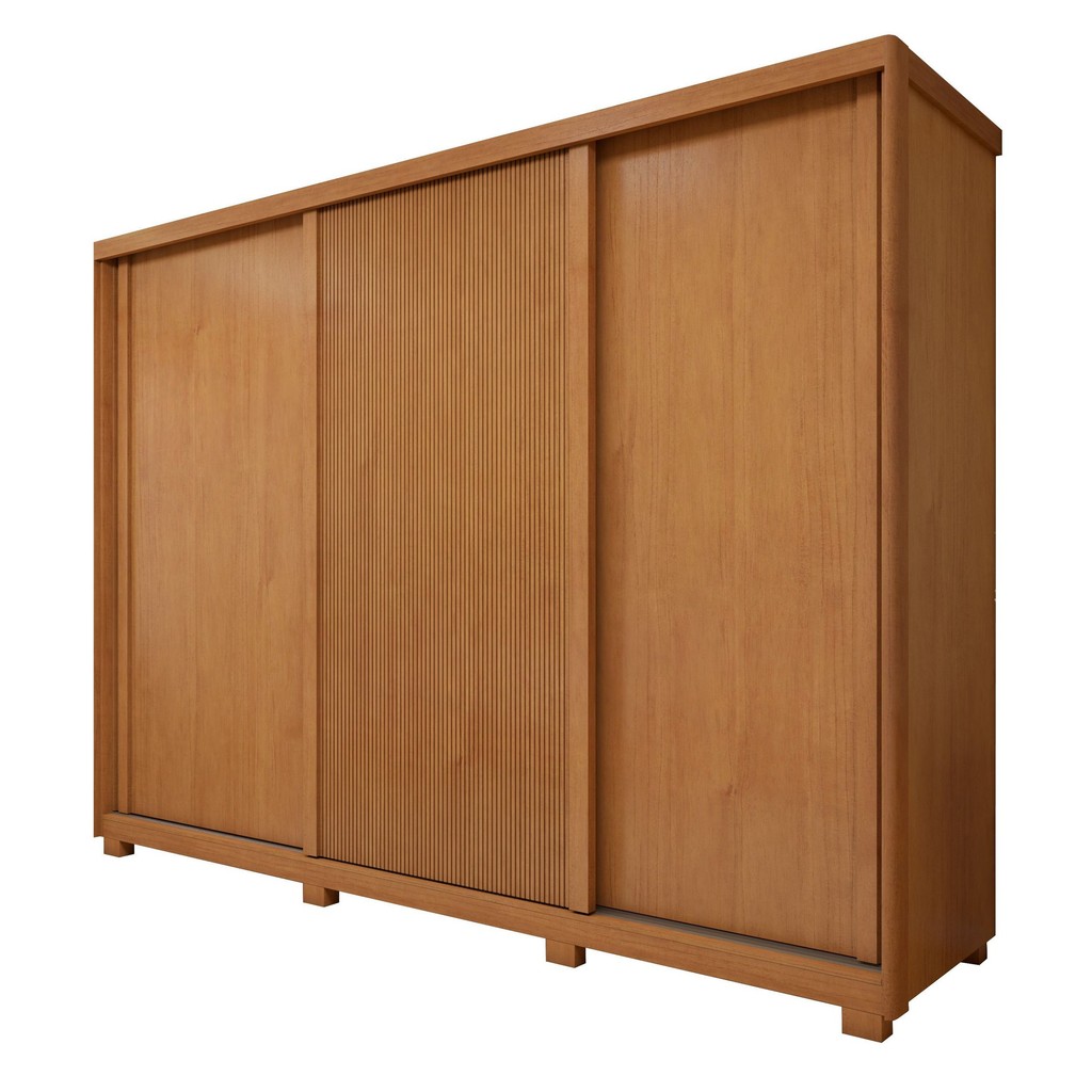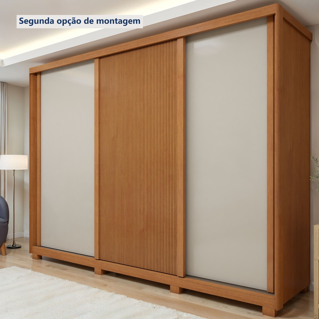 Guarda Roupa Ollie 3 Portas 6 Gavetas 6 Prateleiras 100% MDF com Pés Amêndoa Clean/Off White/Amêndoa Clean
