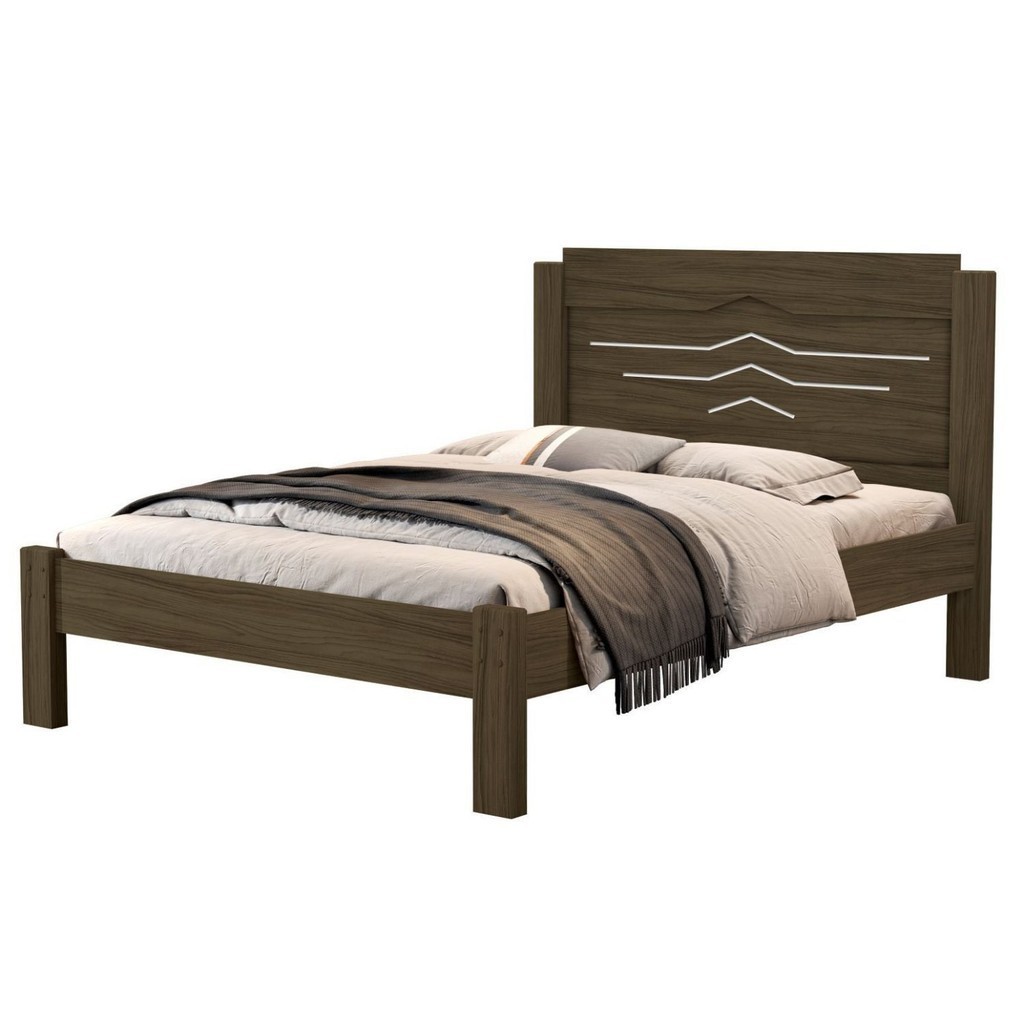Cama de Casal 100% Mdf 103,5x144x195cm Sofia Castanho/Off White