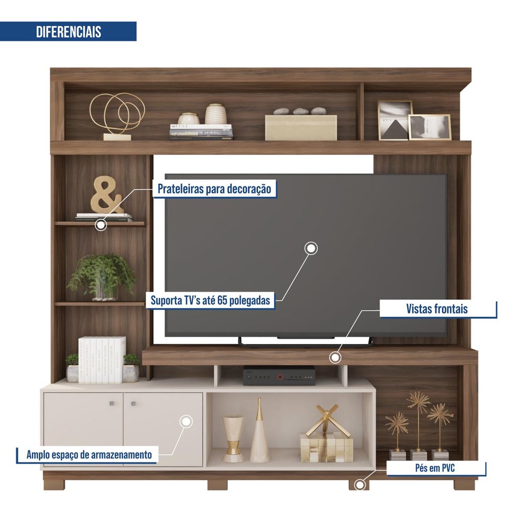 Estante Home Para TV 55 Polegadas com 2 Portas Formosa Lamina Mel/Off White