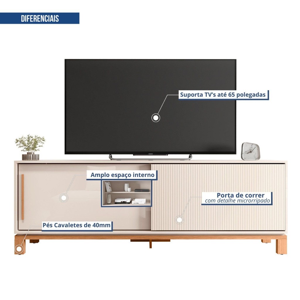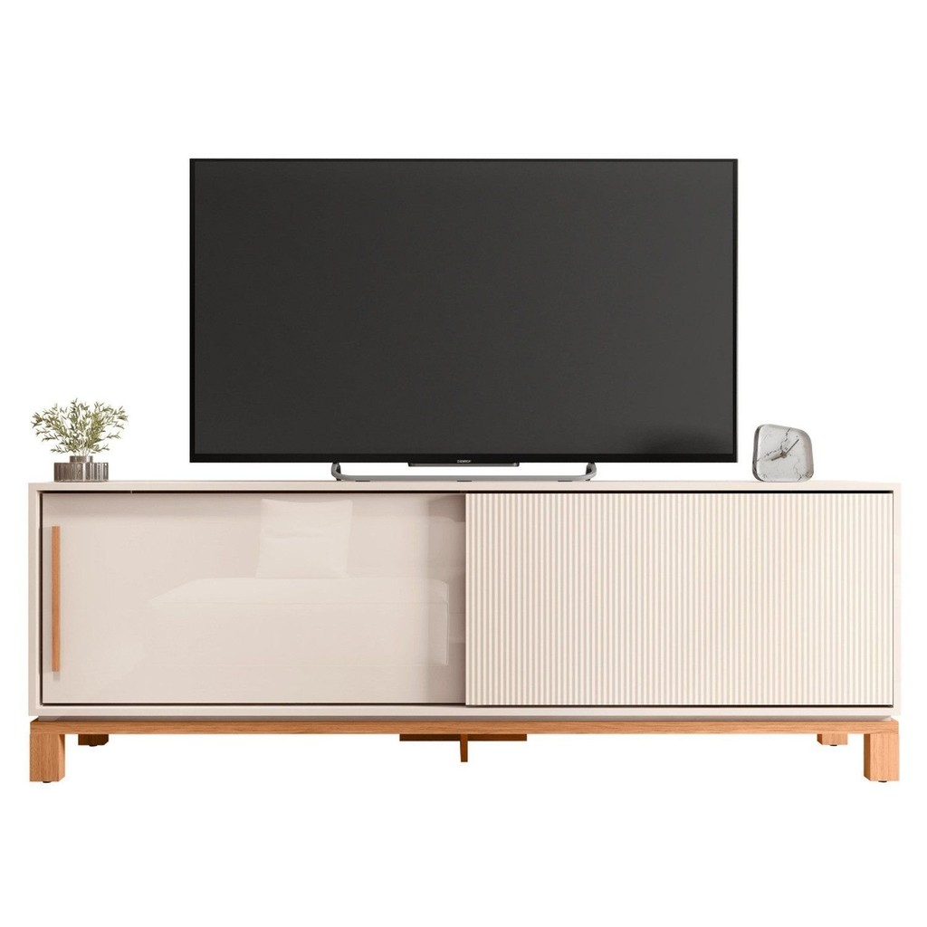 Rack para Tv até 65 Polegadas Portas com Textura Microrripada Pés Cavalete Mondrian 1.8 Off White/Freijó