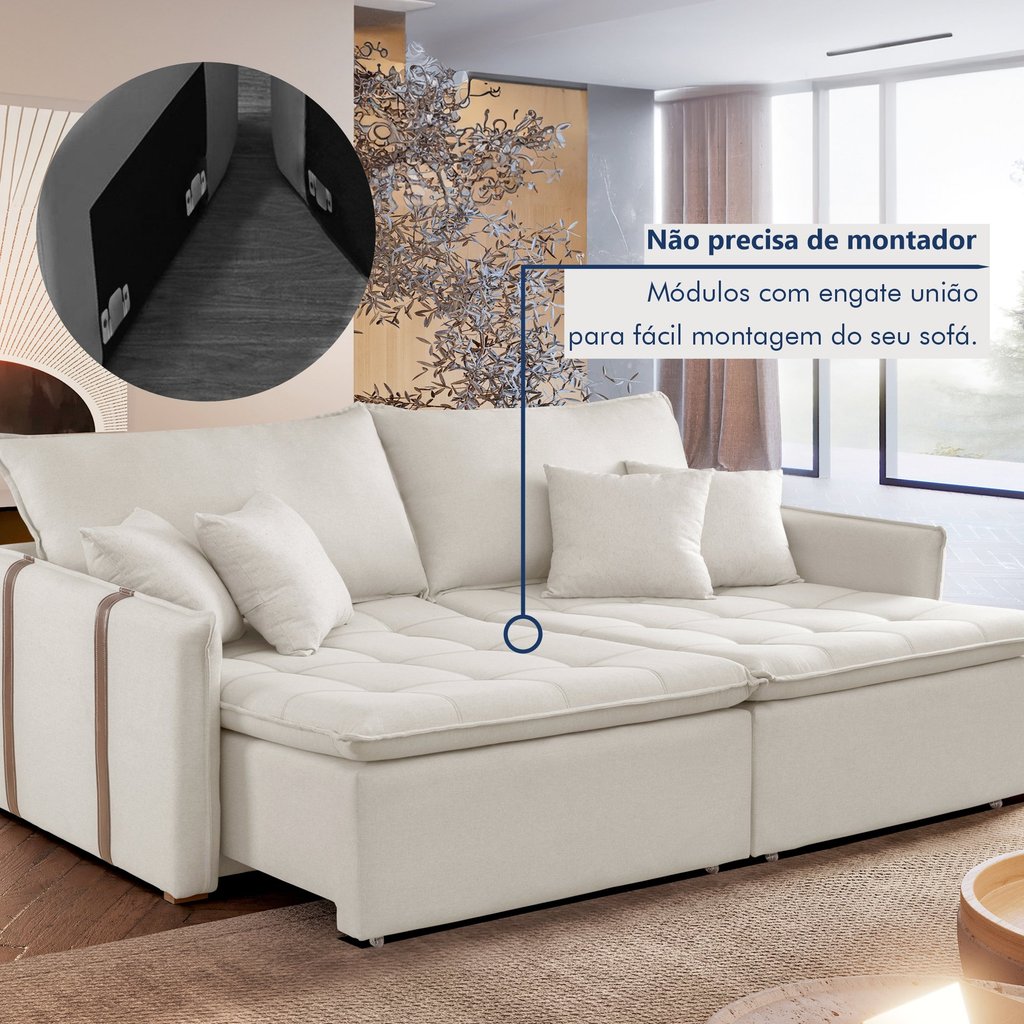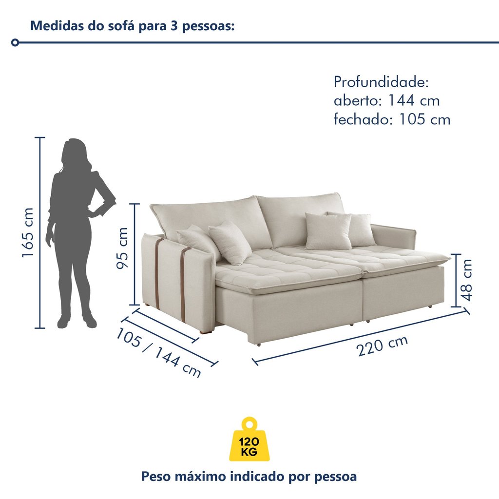 Sofa Cama Retratil e Reclinavel 220cm Detroid Yescasa Veludo Veludo Bege Claro