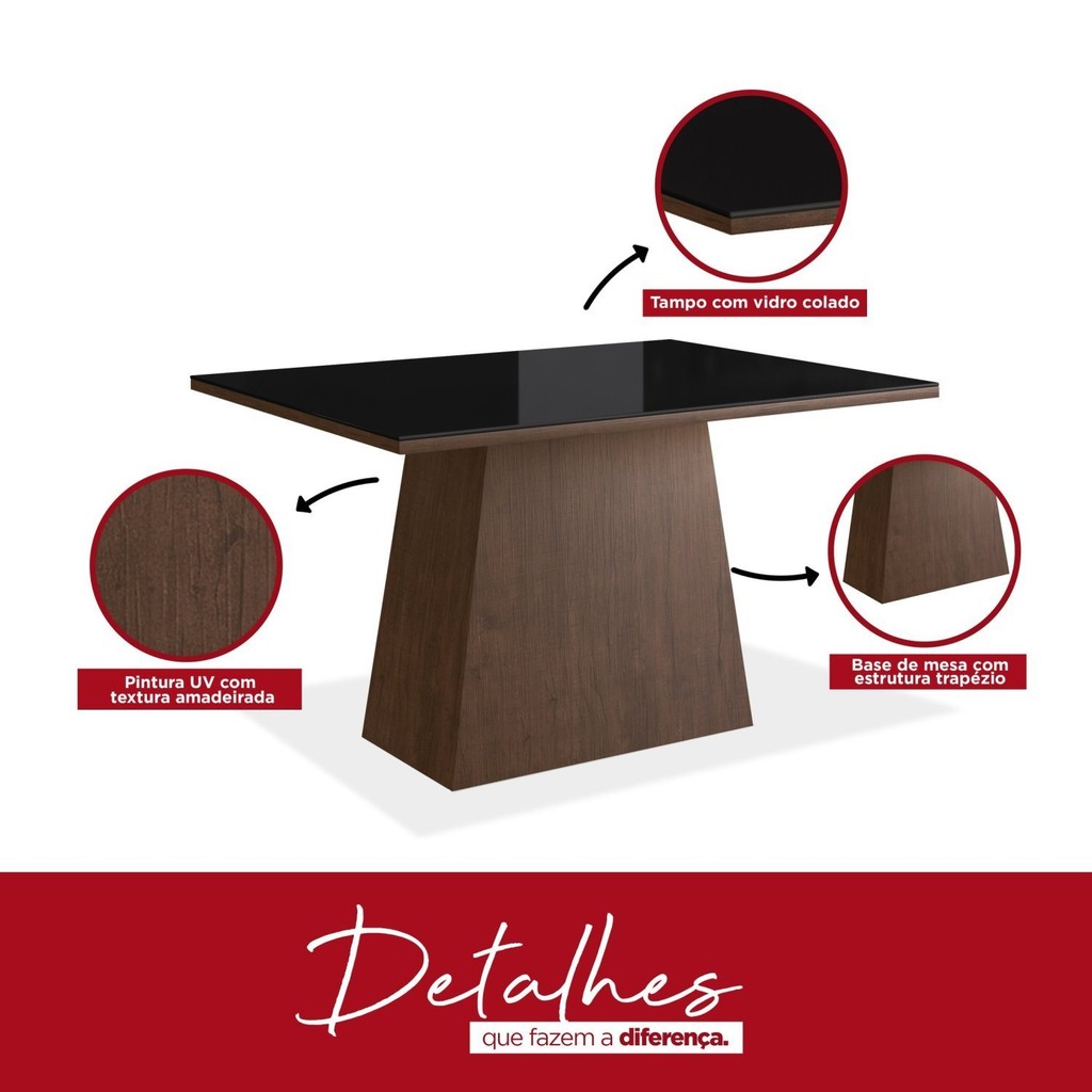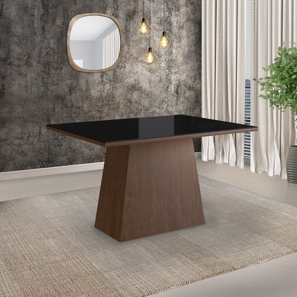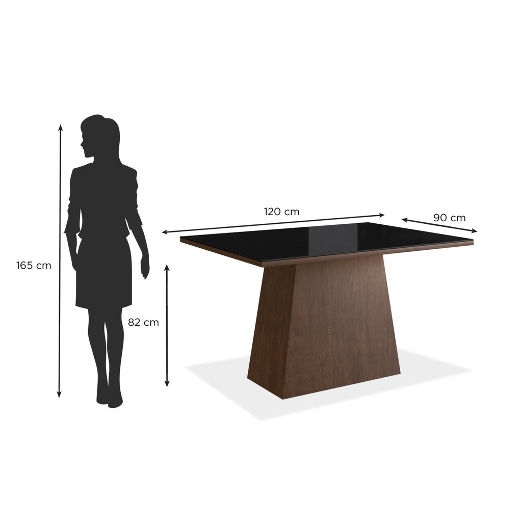 Mesa para Sala de Jantar 120x90cm com Vidro Lapidado Tabaco/Preto