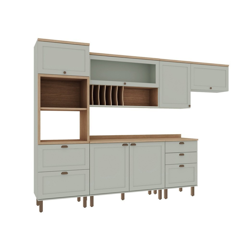 Cozinha Completa 6 Peças Torre Quente 2 Balcões 3 Armários Aéreos Iluminata Verde Mint/Ébano