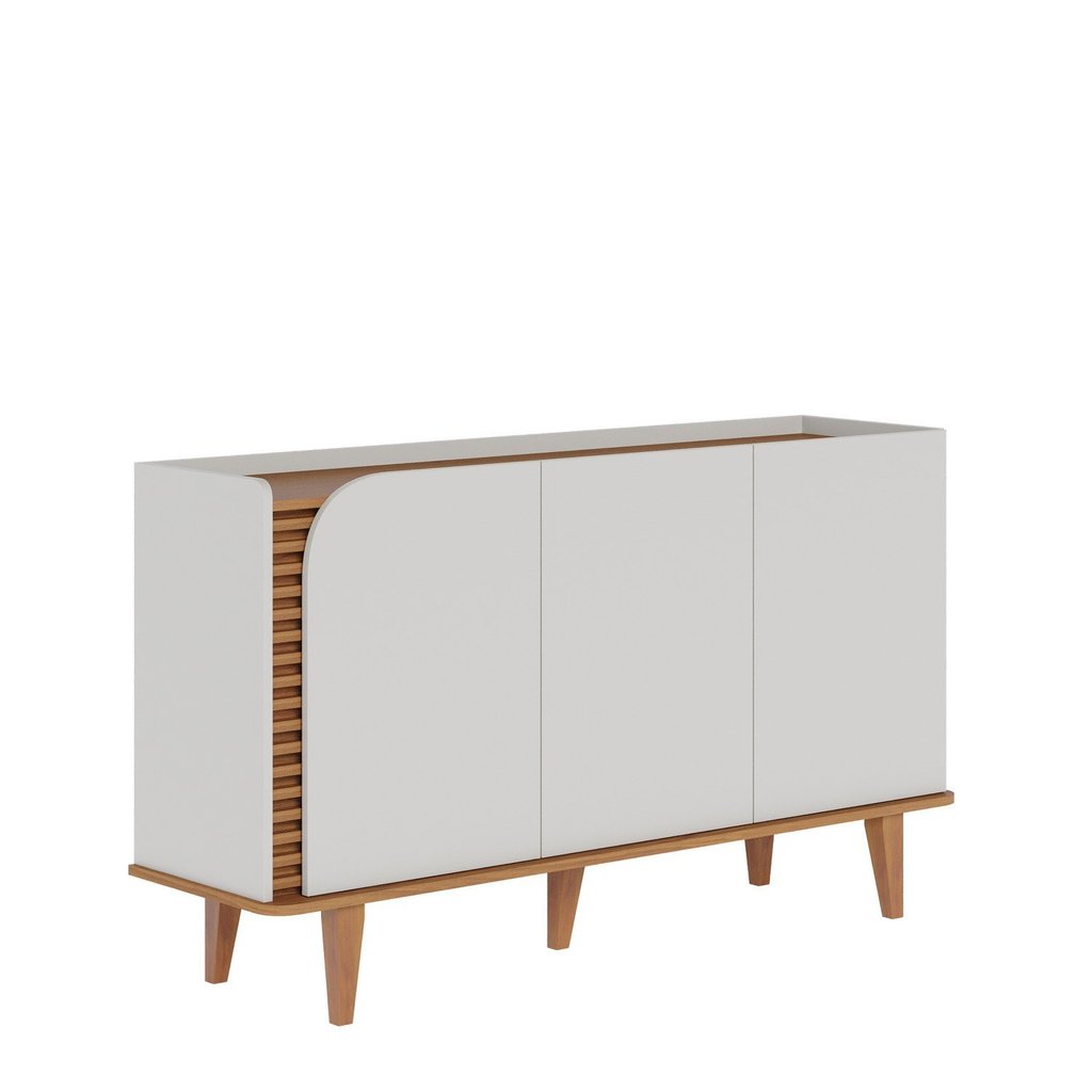 Conjunto Cristaleira 2 Portas de Vidro Jurerê e Buffet para Sala de Jantar 3 Portas Jurerê Off White Matte/Freijó