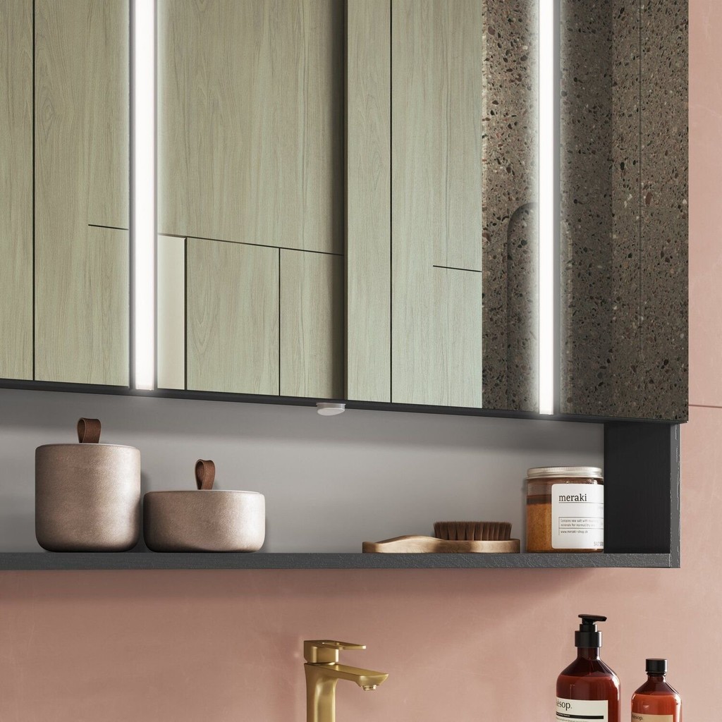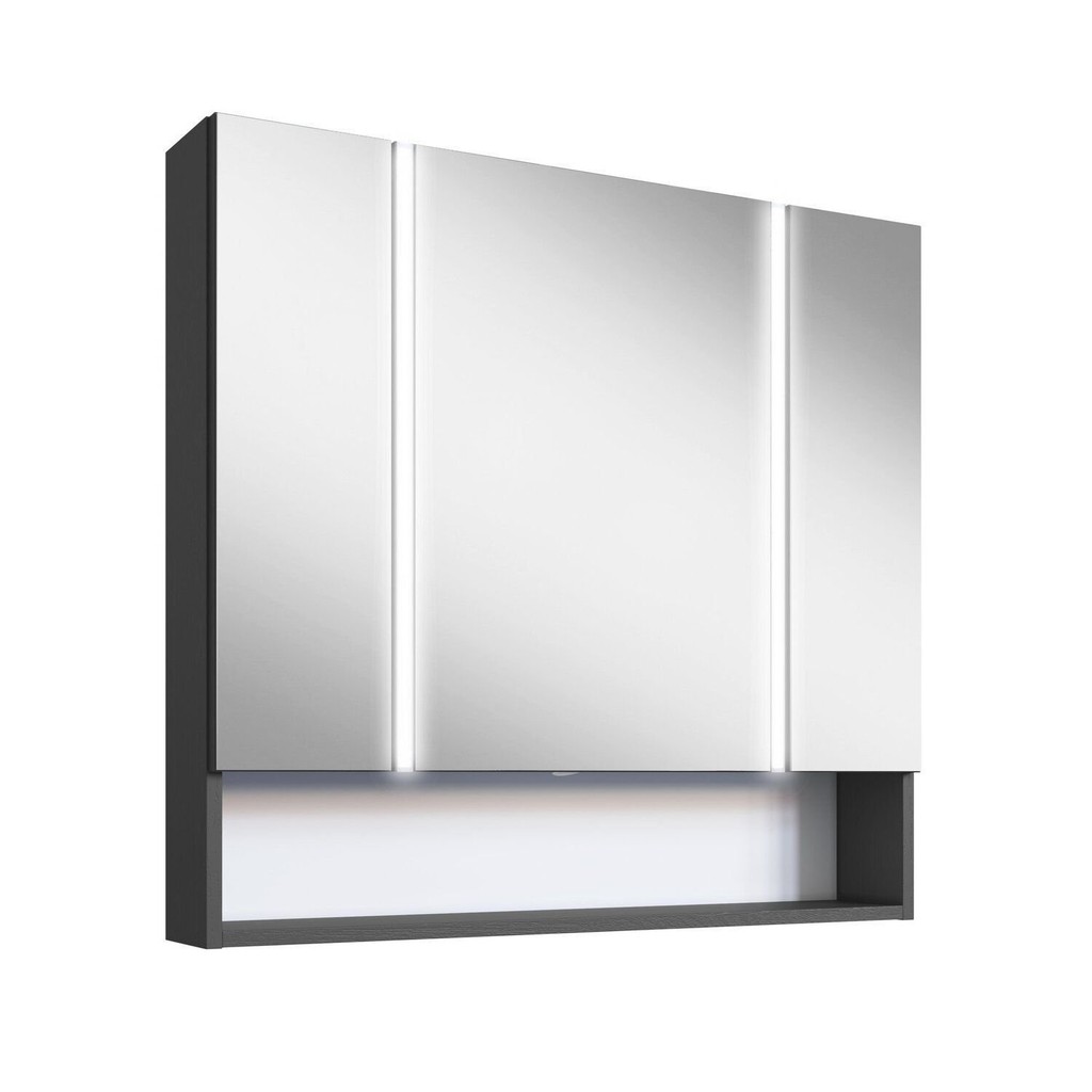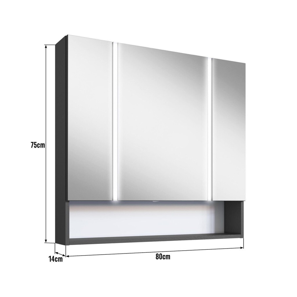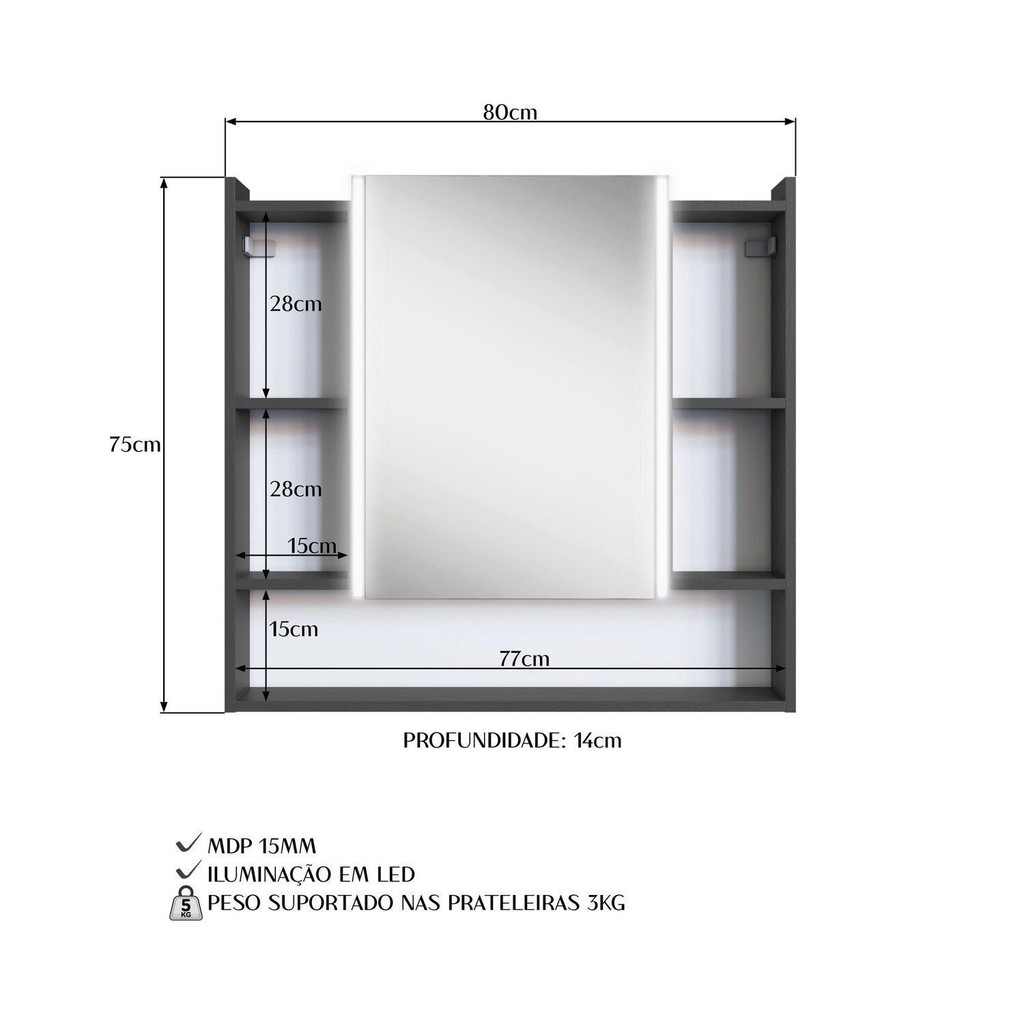 Espelheira para Banheiro com Led 2 Portas Yescasa Grafite