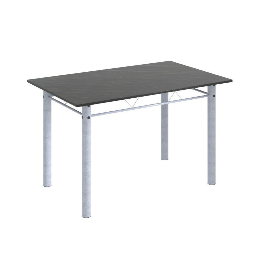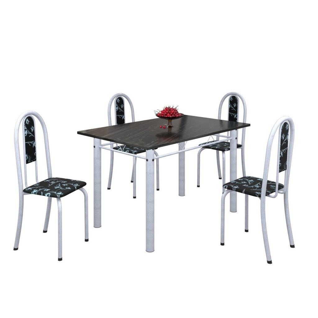 Conjunto de Mesa 120x75cm Tampo em Ardósia com 4 Cadeiras Iris A Preto Floral/Martelado Pérola/Ardósia Indiano