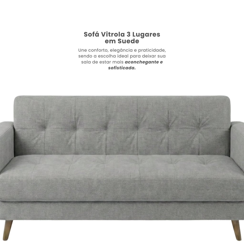 Sofá 3 Lugares Suede Escritório e Recepção Vitrola Cinza