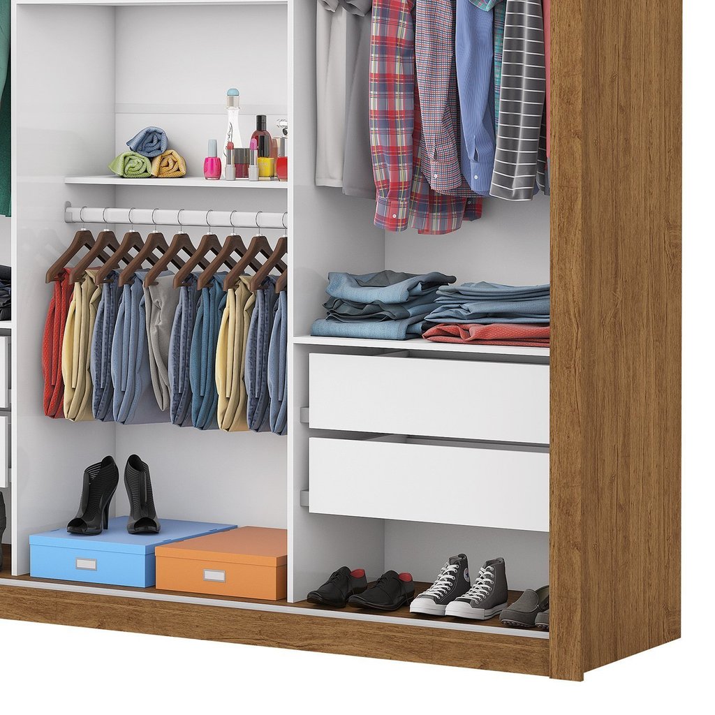 Guarda-roupa Casal 4 Espelhos 3 Portas de Correr 4 Gavetas Max Plus Espresso Móveis Cinamomo