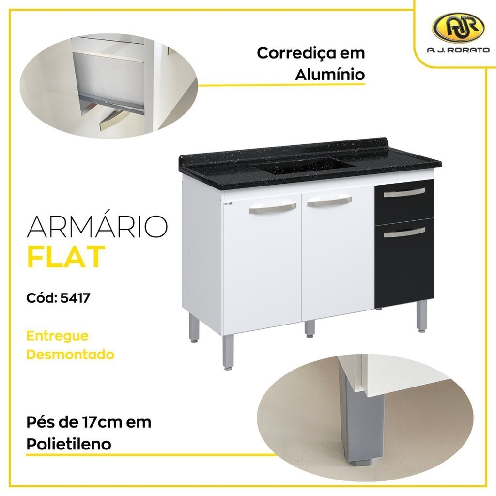 Balcão de Cozinha 3 Portas e 1 Gaveta 116,2cm Preto