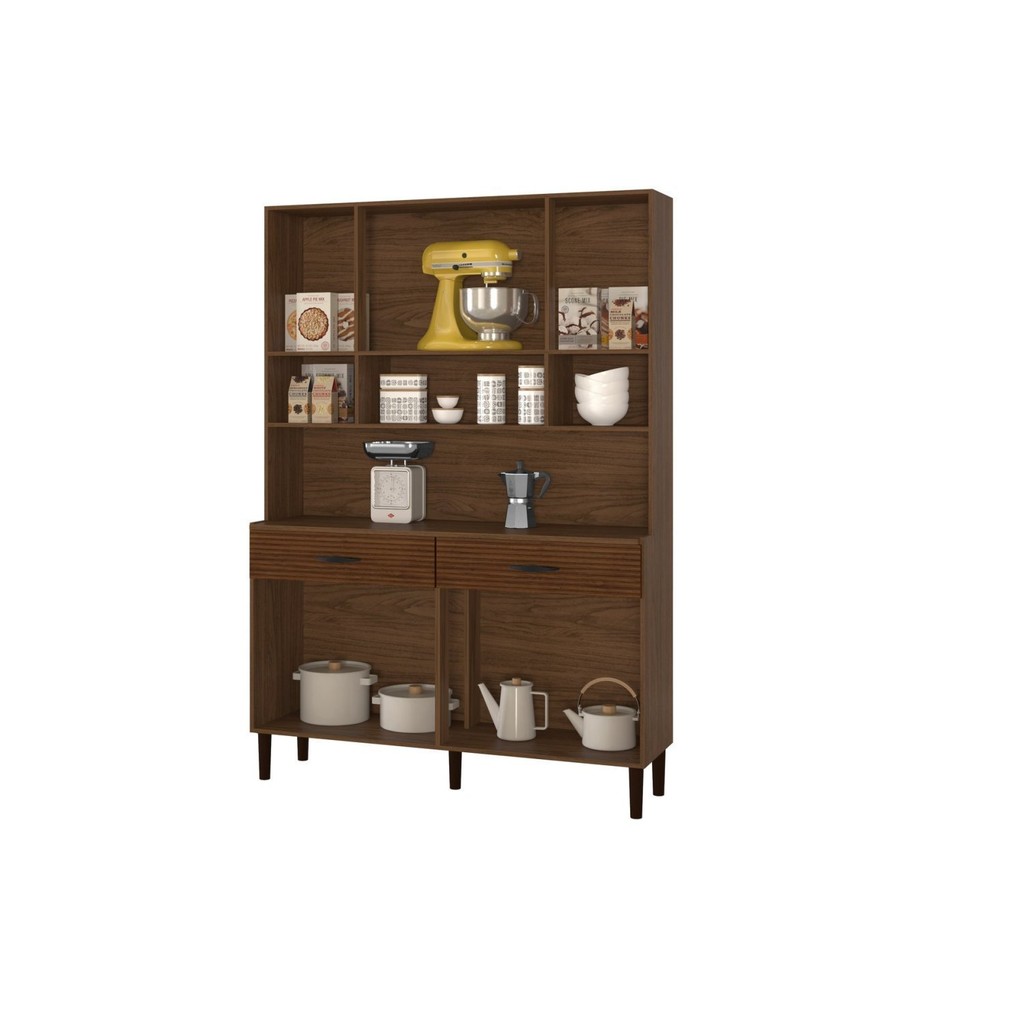 Armário de Cozinha 8 Portas 2 Gavetas Golden Nogueira/Off White/CP- Ripado
