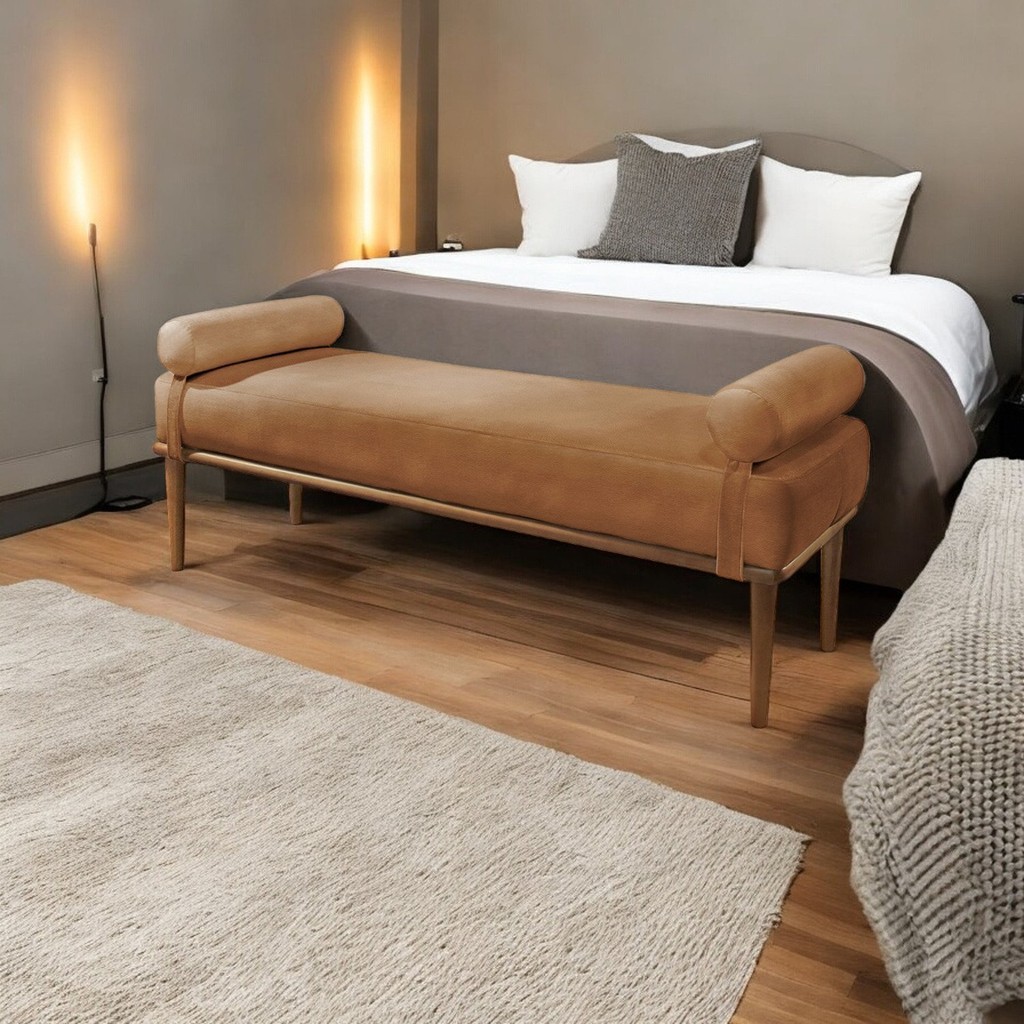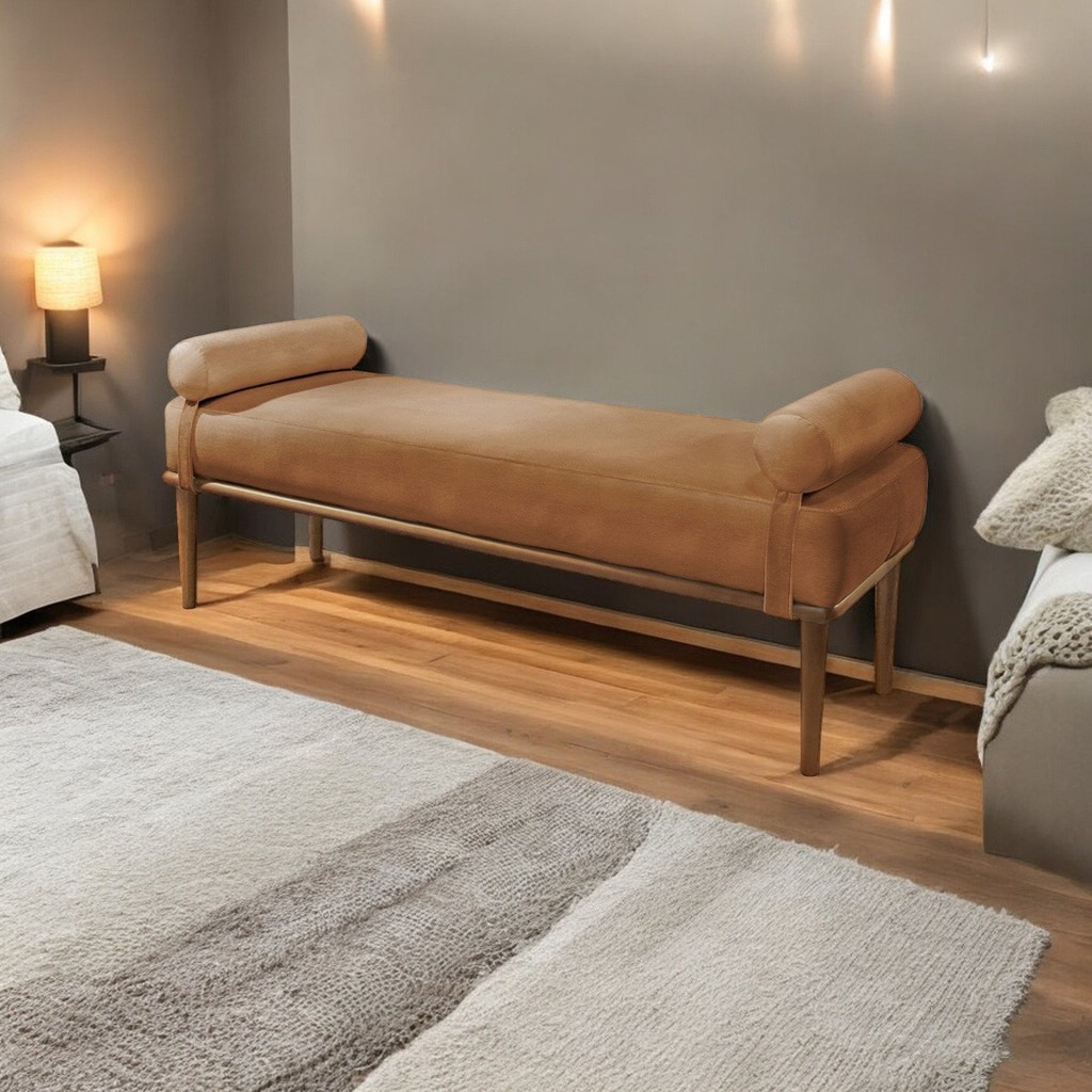 Recamier Puff Luxo Madeira Maciça Berlim Corino Caramelo