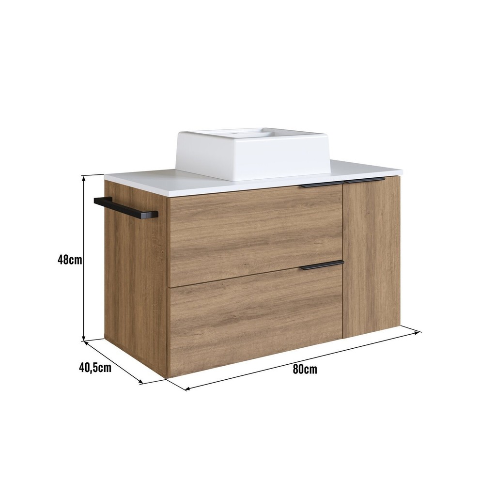 Gabinete de Banheiro Suspenso 80cm com 1 Toalheiro 2 Portas e 1 Gaveta Bh8020 com Cuba Mel/Branco