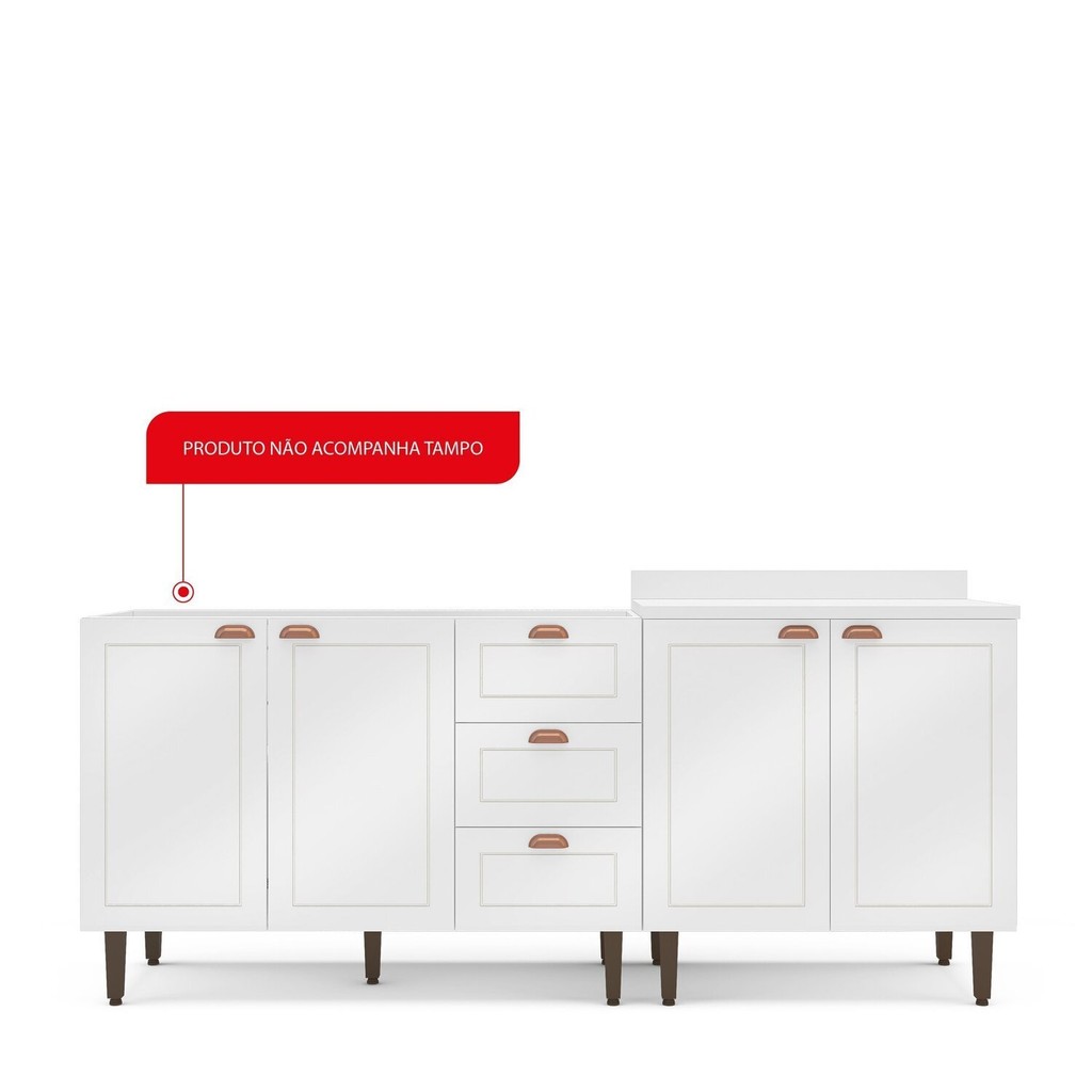 Cozinha Pérola 2 Peças Balcão 2 Gavetas 3 Portas e Balcão 2 Portas Yescasa Branco
