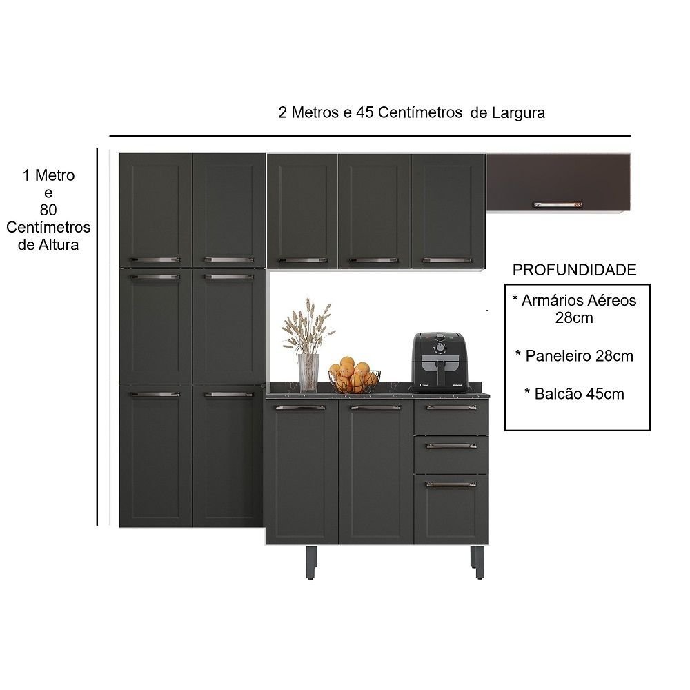 Cozinha Modulada Compacta em Aço 4 Peças 13 Portas 2 Gavetas Florençe Itatiaia Branco/Grafite