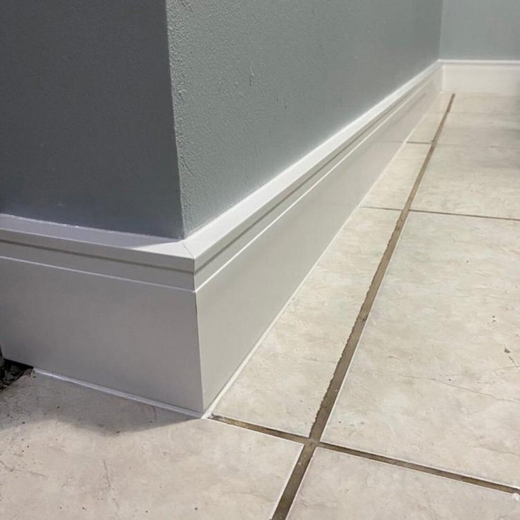 Kit com 5 Barras Rodapé de Poliestireno 12cmX15mm Sobrepor Frisado 12m