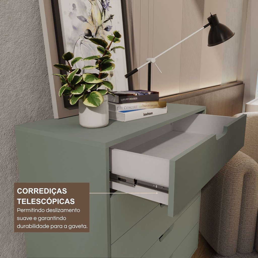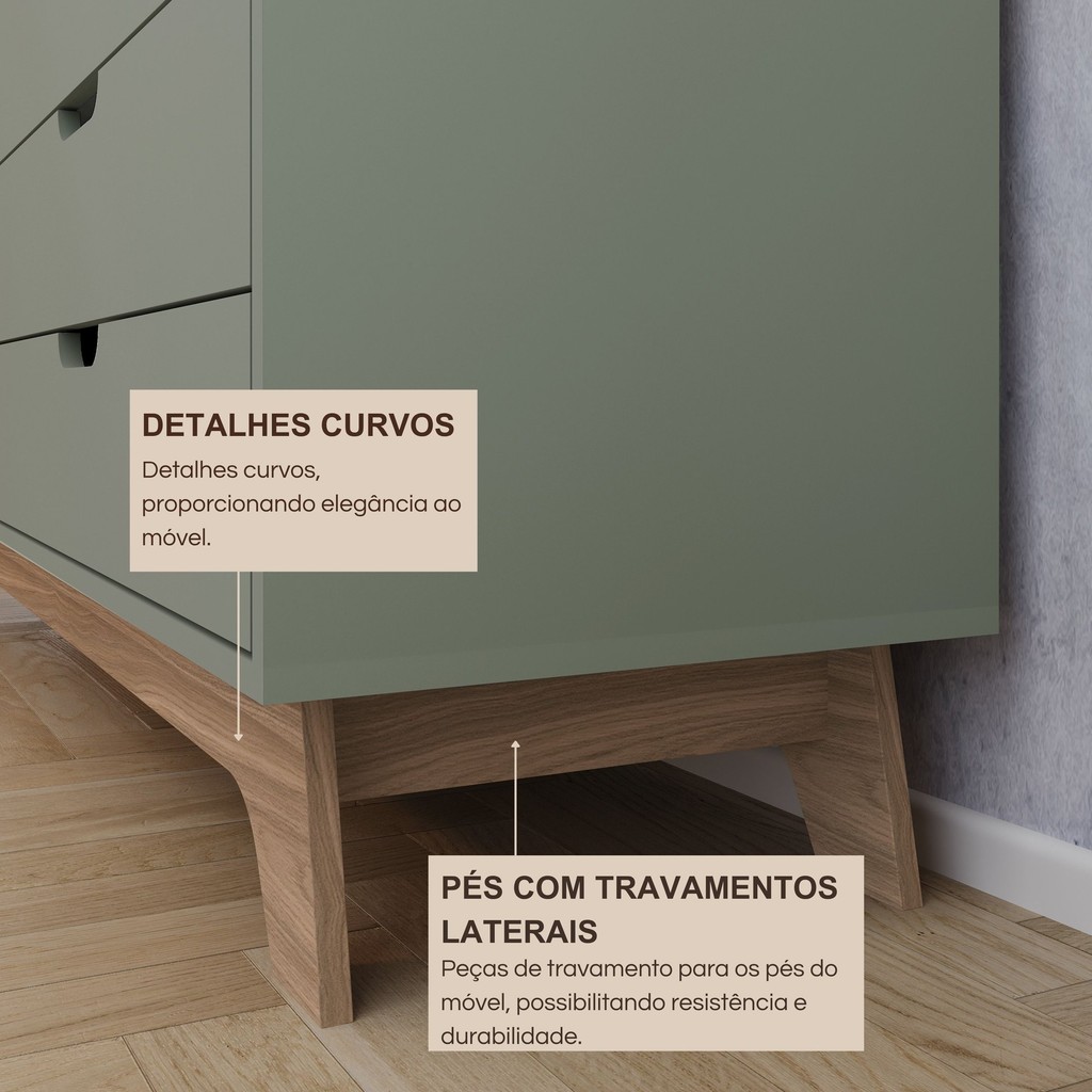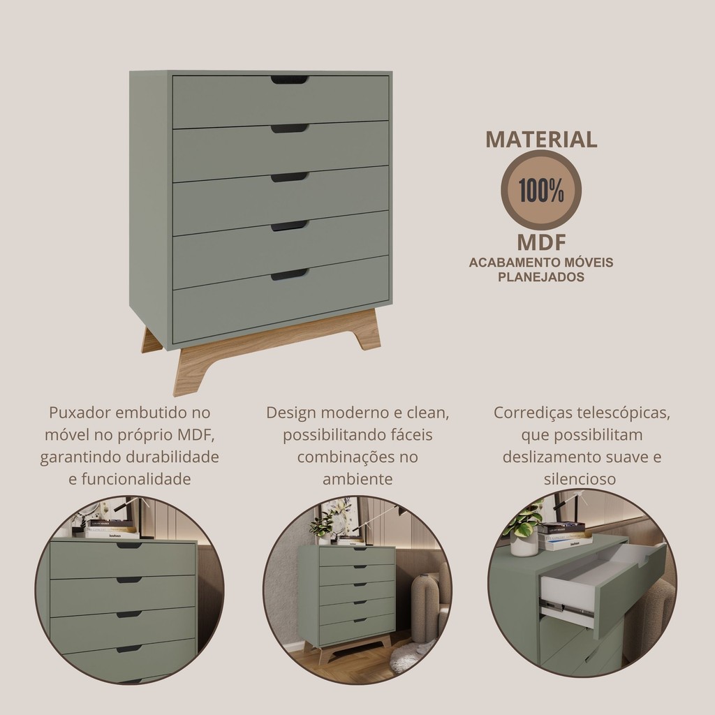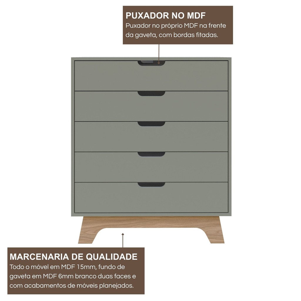 Cômoda Alice 5 Gavetas em 100% Mdf 95x81x40 Cm Verde/Louro Freijó