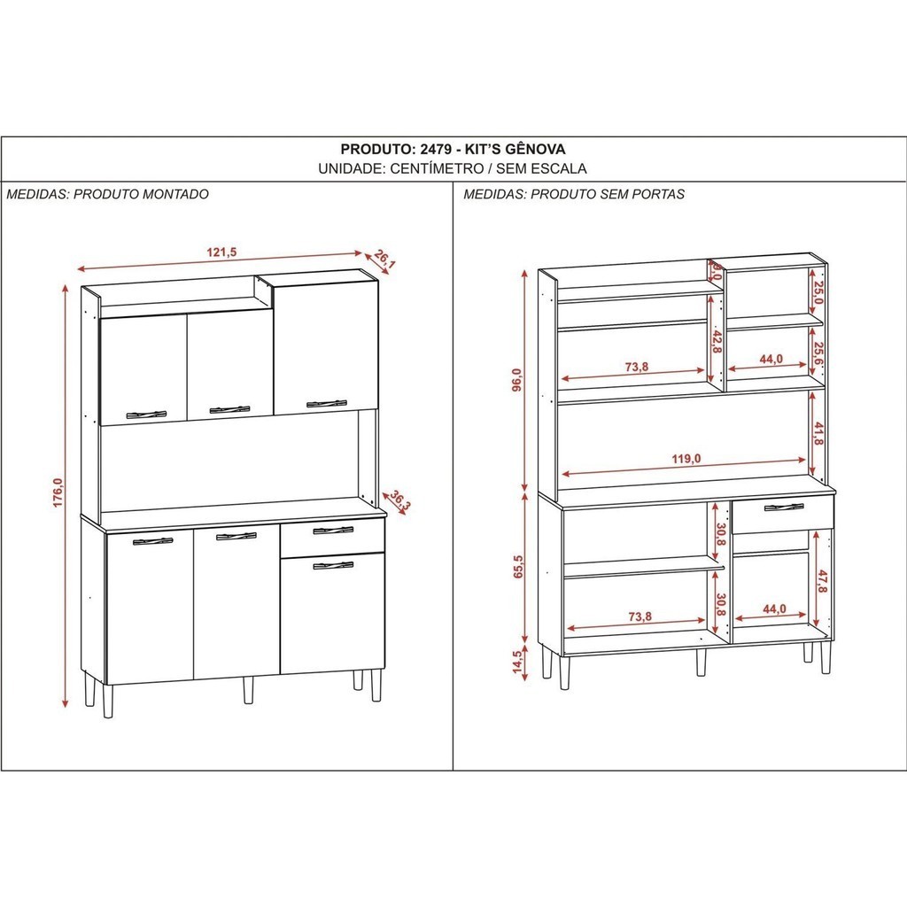 Armário de Cozinha 6 Portas 1 Gaveta Kit Gênova Freijó/Supremo/ CP- Ripado Freijó
