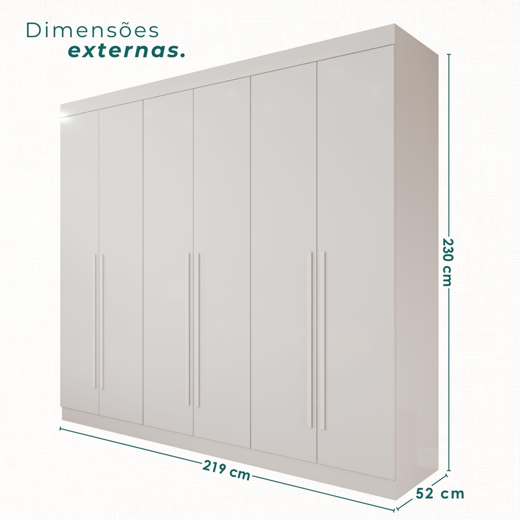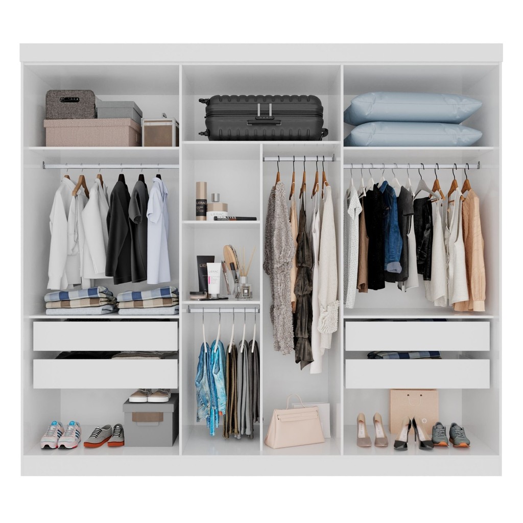 Guarda Roupa Casal 6 Portas 4 Gavetas Uberaba 100% MDF Branco Neve