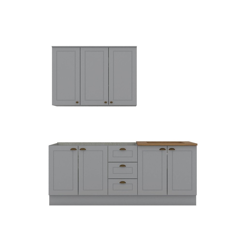 Cozinha Compacta 3 Peças com Tampo Para Cooktop Emily Cinza/Nature