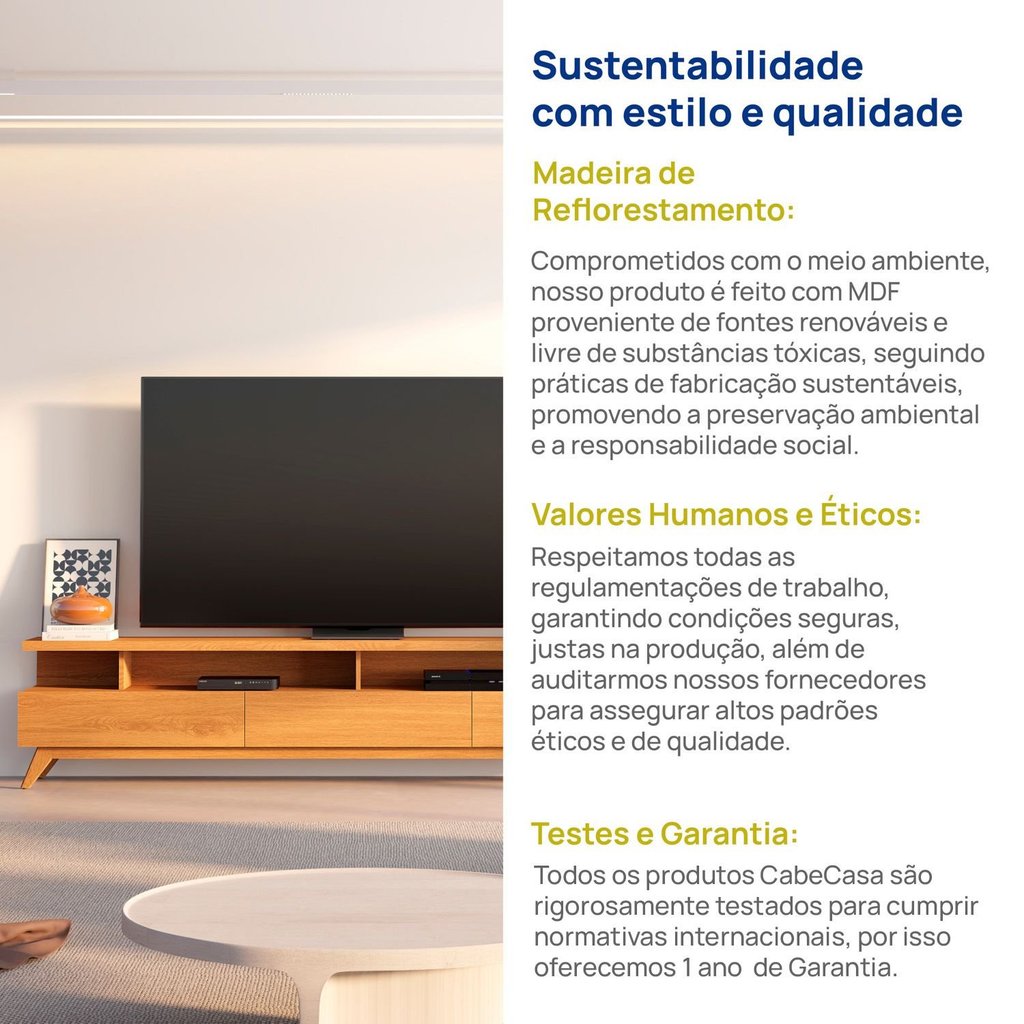 Rack para Tv até 75 Polegadas 217cm 100% MDF Yucca CabeCasa MadeiraOriginals Nature