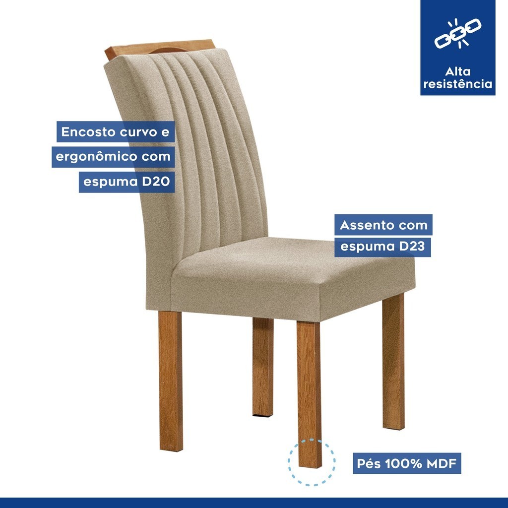 Conjunto Mesa Tampo Smart Plus Kyra 120cmx90cm 4 Cadeiras Arthus Cinamomo/Off White/Linho