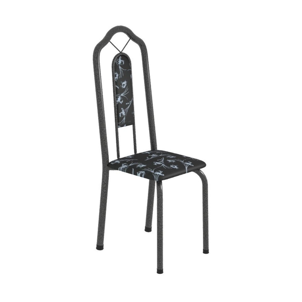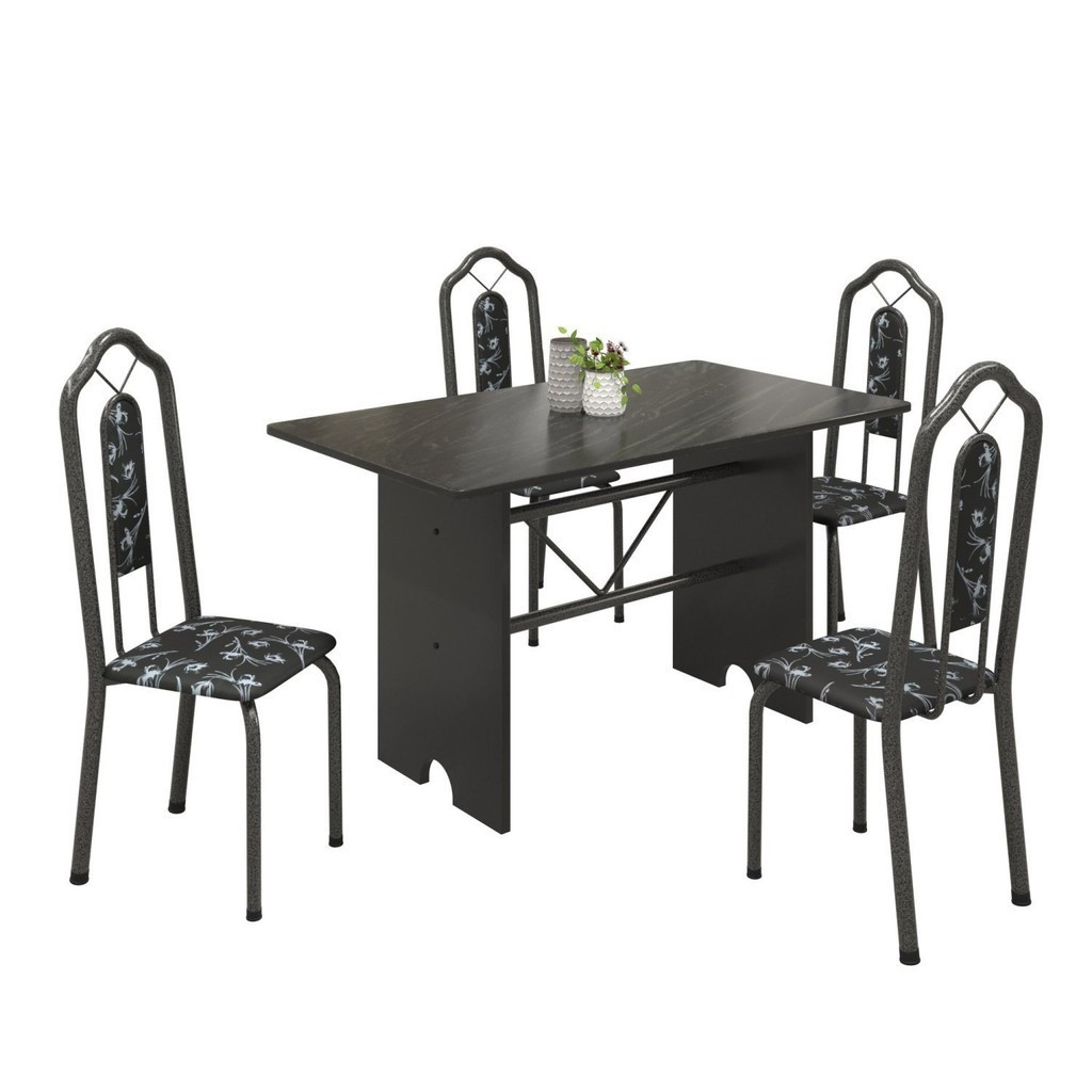 Conjunto de Mesa 120x75cm Tampo Ardósia com 4 Cadeiras Bianca Martelado Prata/Ardósia Indiano/Preto Floral