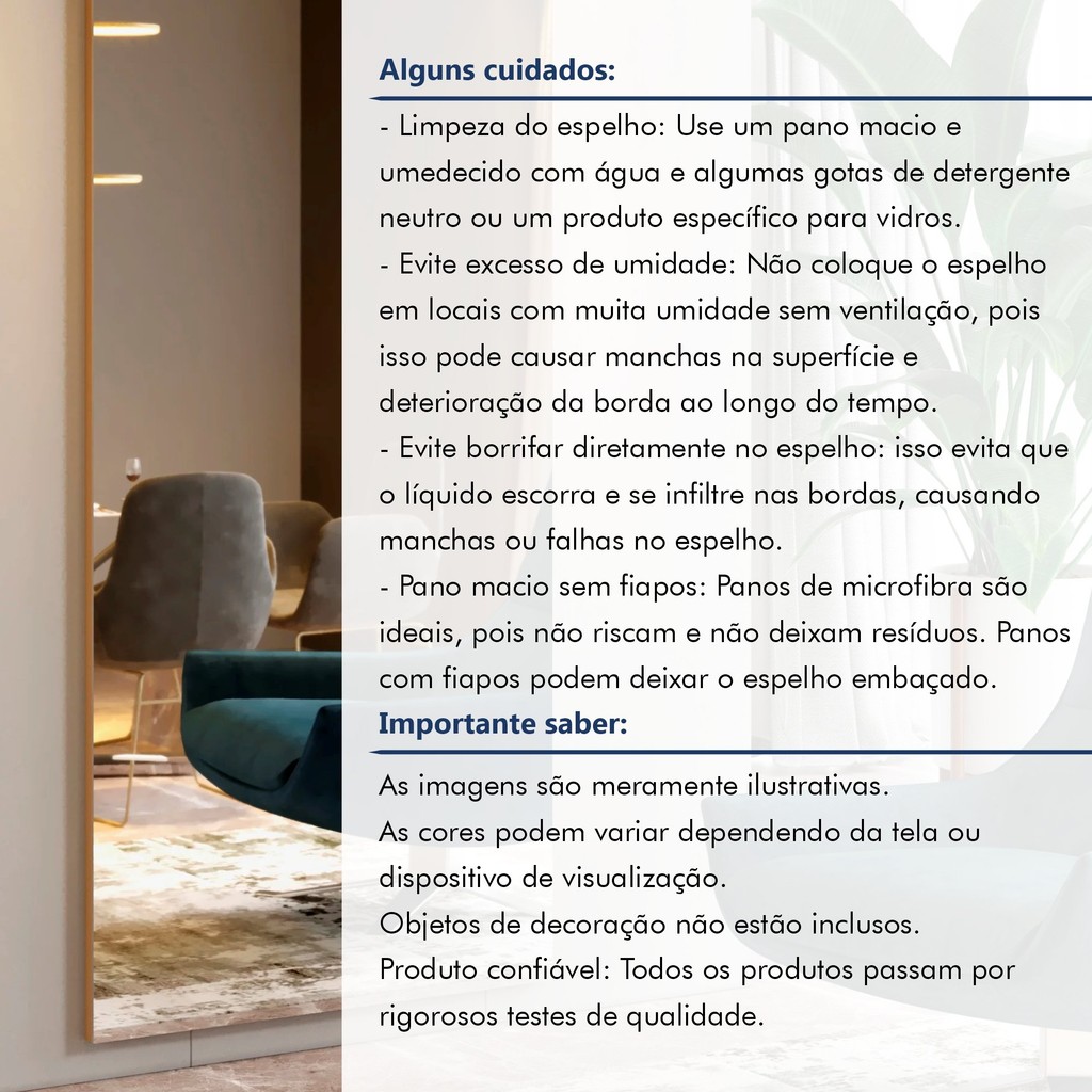 Espelho Decorativo 180x90cm Retangular Yescasa