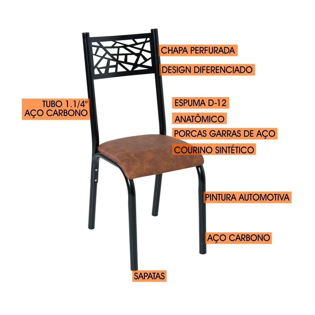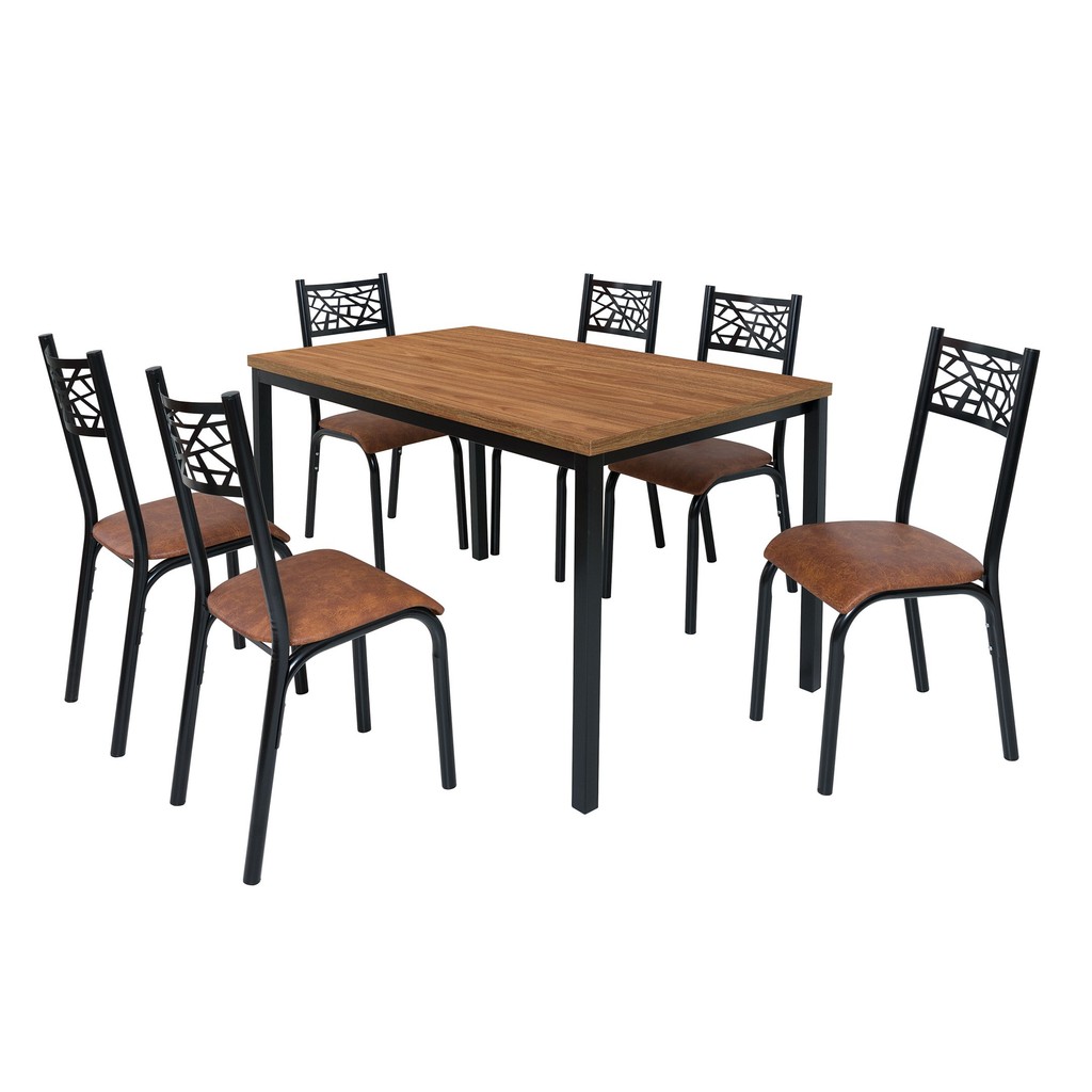 Conjunto Jade Flex 1,36m Tampo Laminado com 6 Cadeiras Preto/Caramelo/Amendoa
