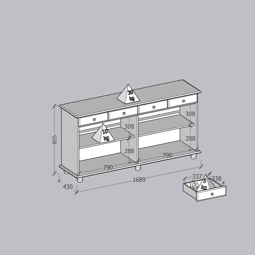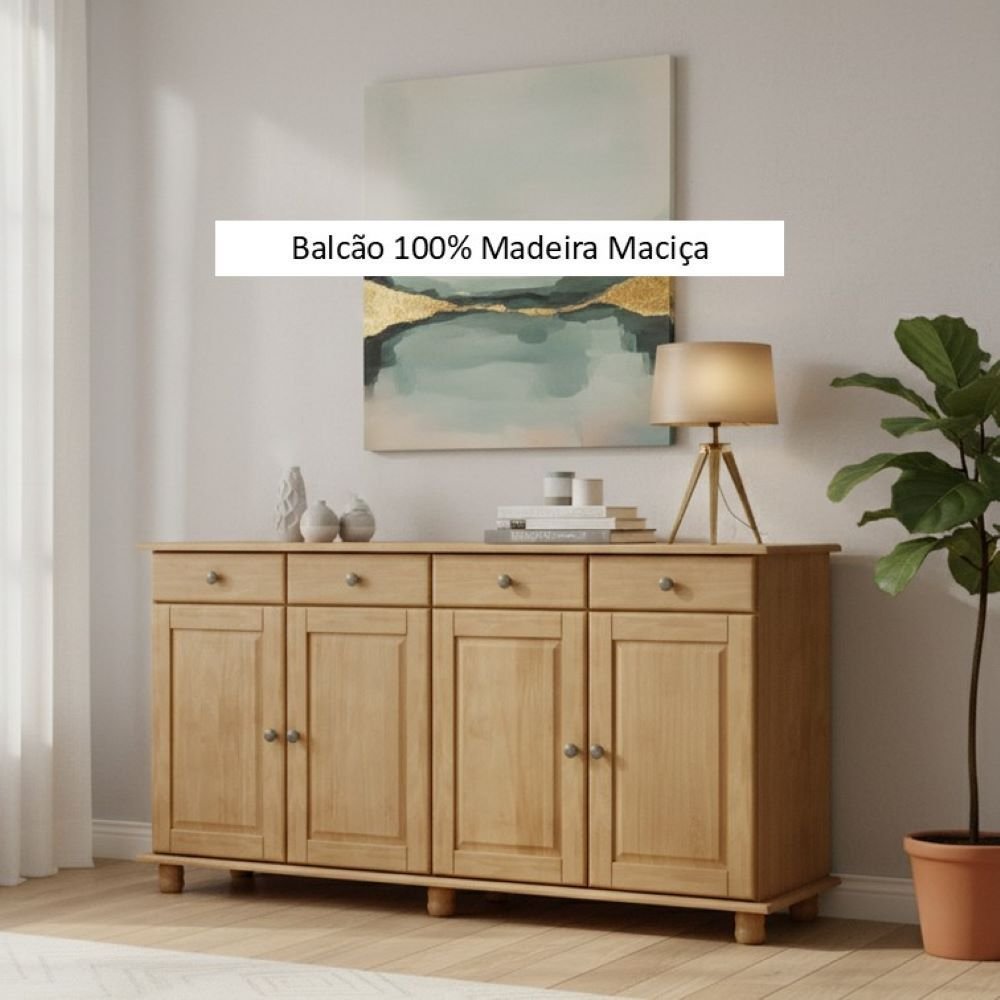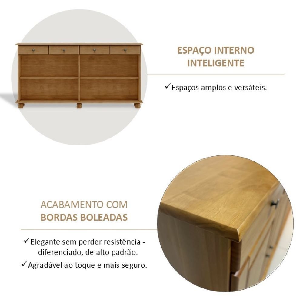 Buffet Aparador Rústico 100% Madeira Maciça 4 Portas 4 Gavetas Linha Rubi Freijó