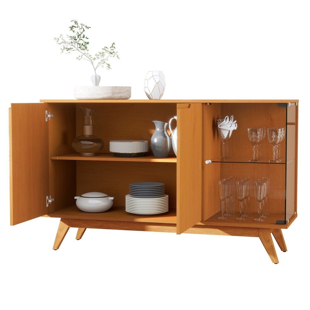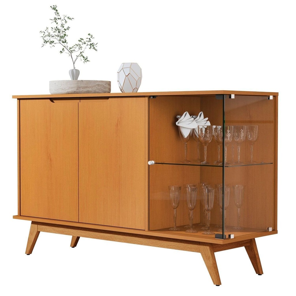 Buffet Tucumã com Puxador Usinado e Vidro em 4cm Temperado