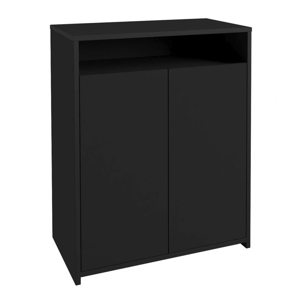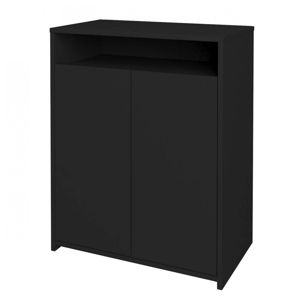 Armário para Escritório Baixo 2 Portas 2 Prateleiras Cool Preto