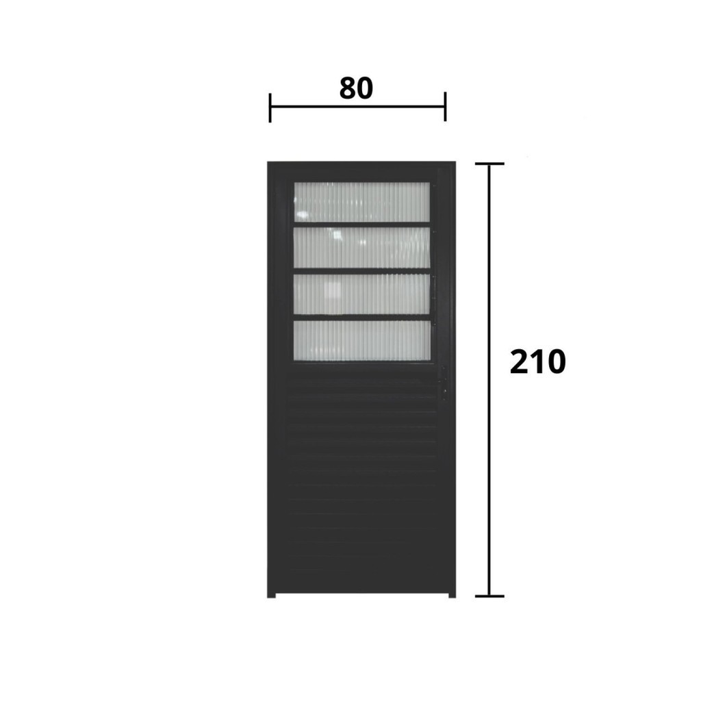 Porta de Alumínio com Basculante 210x80cm Hale Esquadrias Abertura Esquerda Preto