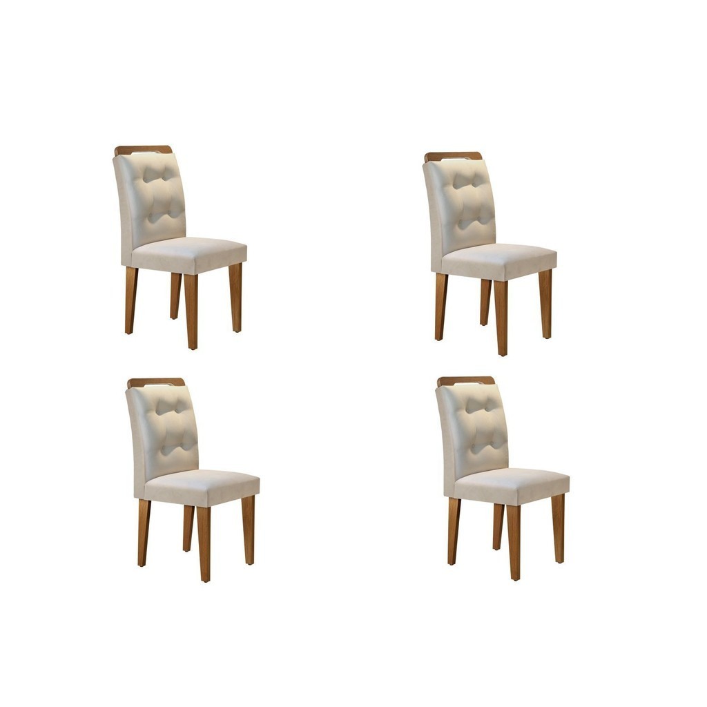 Conjunto 4 Cadeiras Valentina Veludo Creme/Imbuia