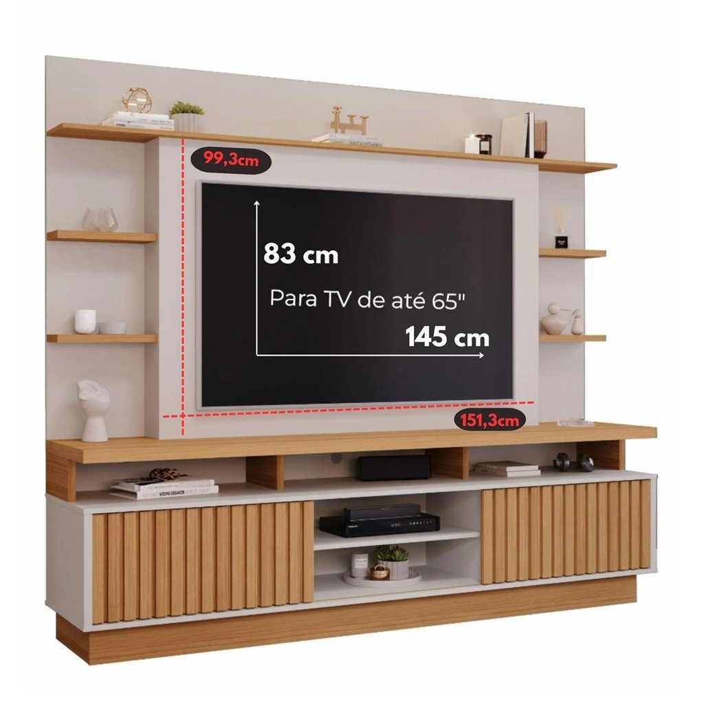 Estante Home para TV até 65 Polegadas Ripado 2 Portas Ravena Yescasa 100% MDF Off White/Nature