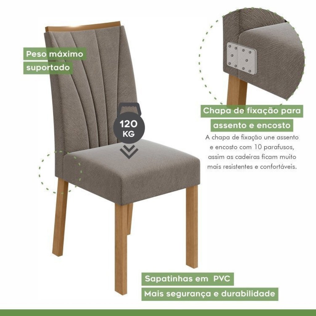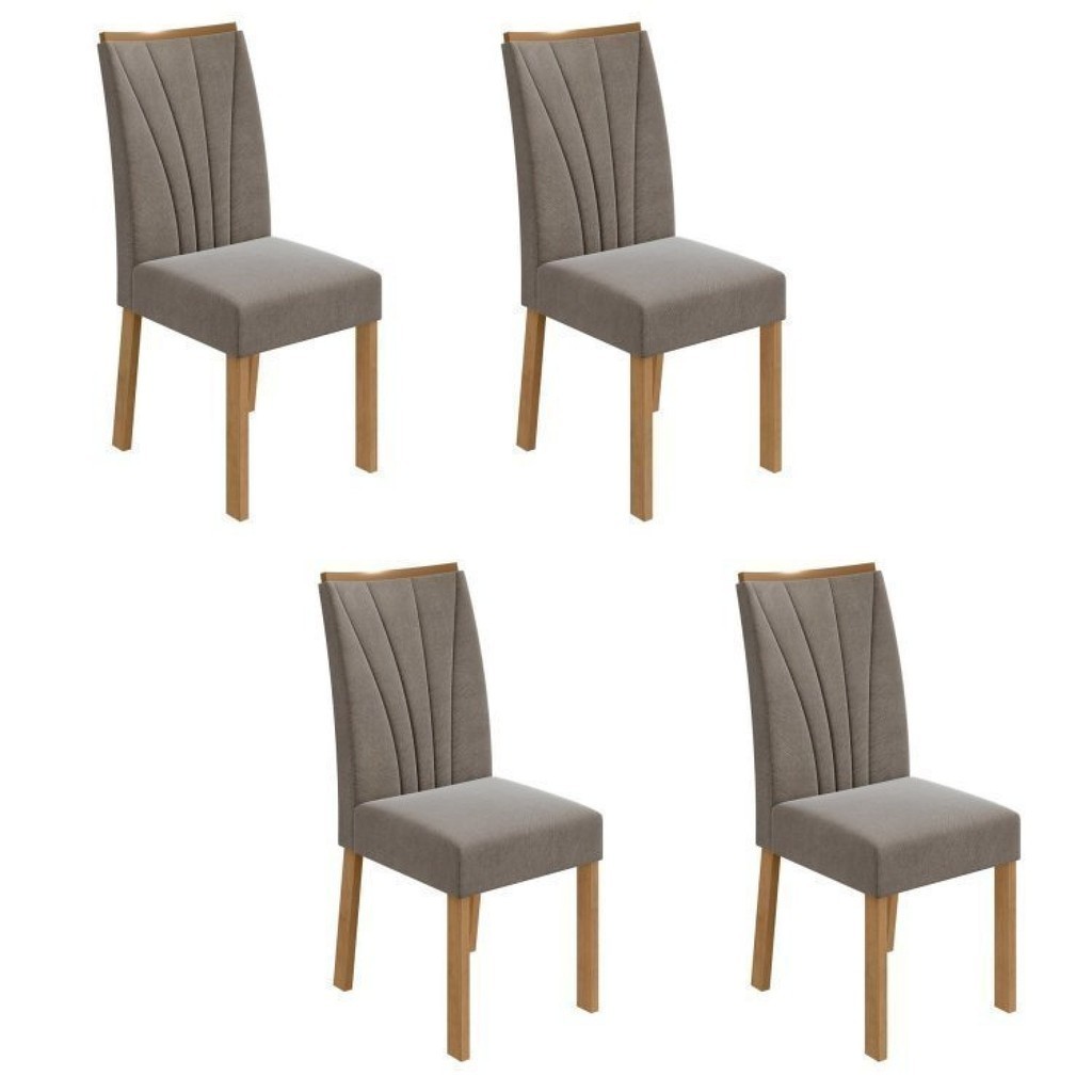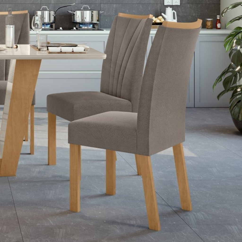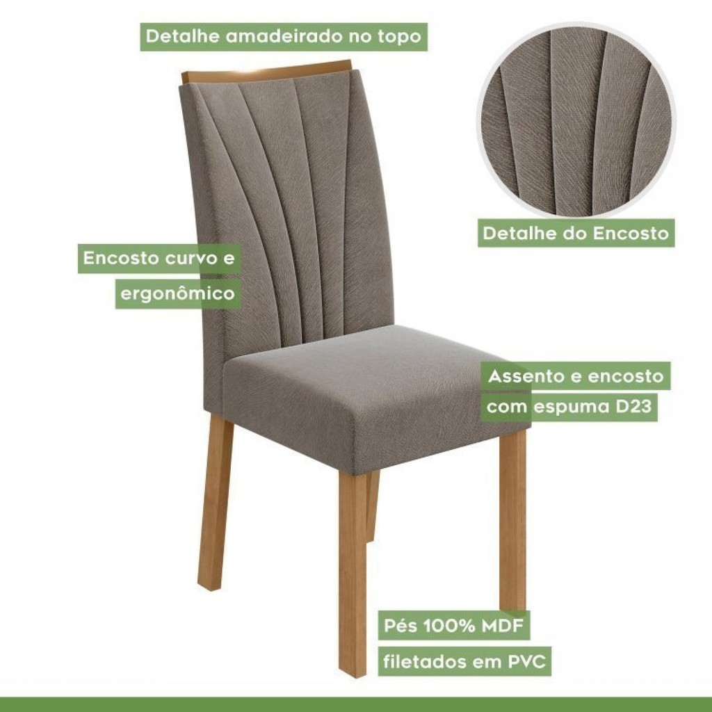 Conjunto com 8 Cadeiras para Sala de Jantar Apogeu Amêndoa Clean/Suede Animale Bege
