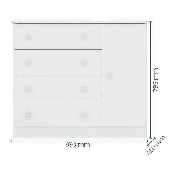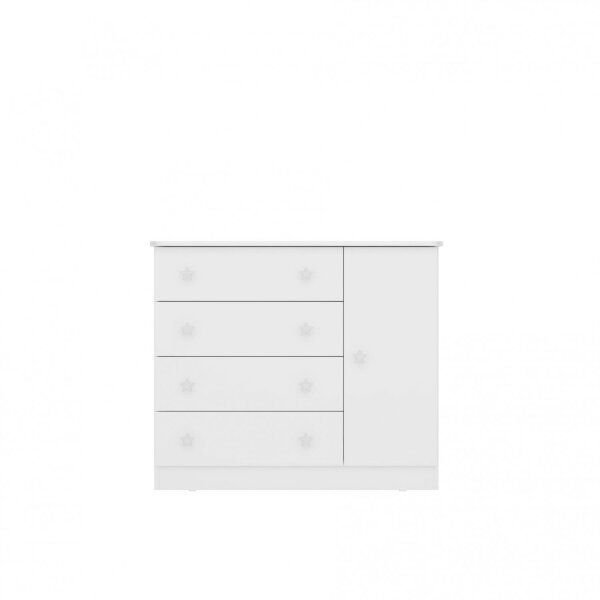 Cômoda Infantil 1 Porta 4 Gavetas Doce Sonho Branco