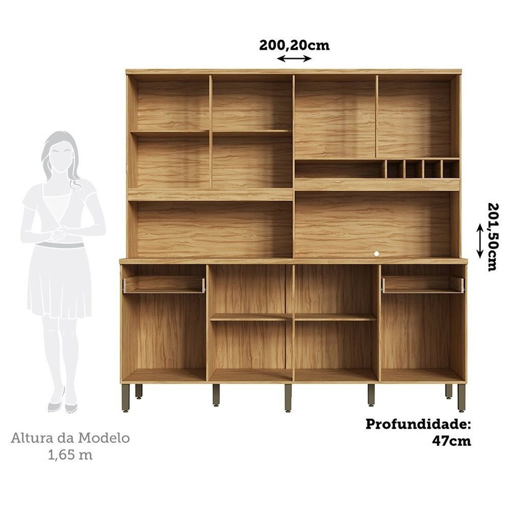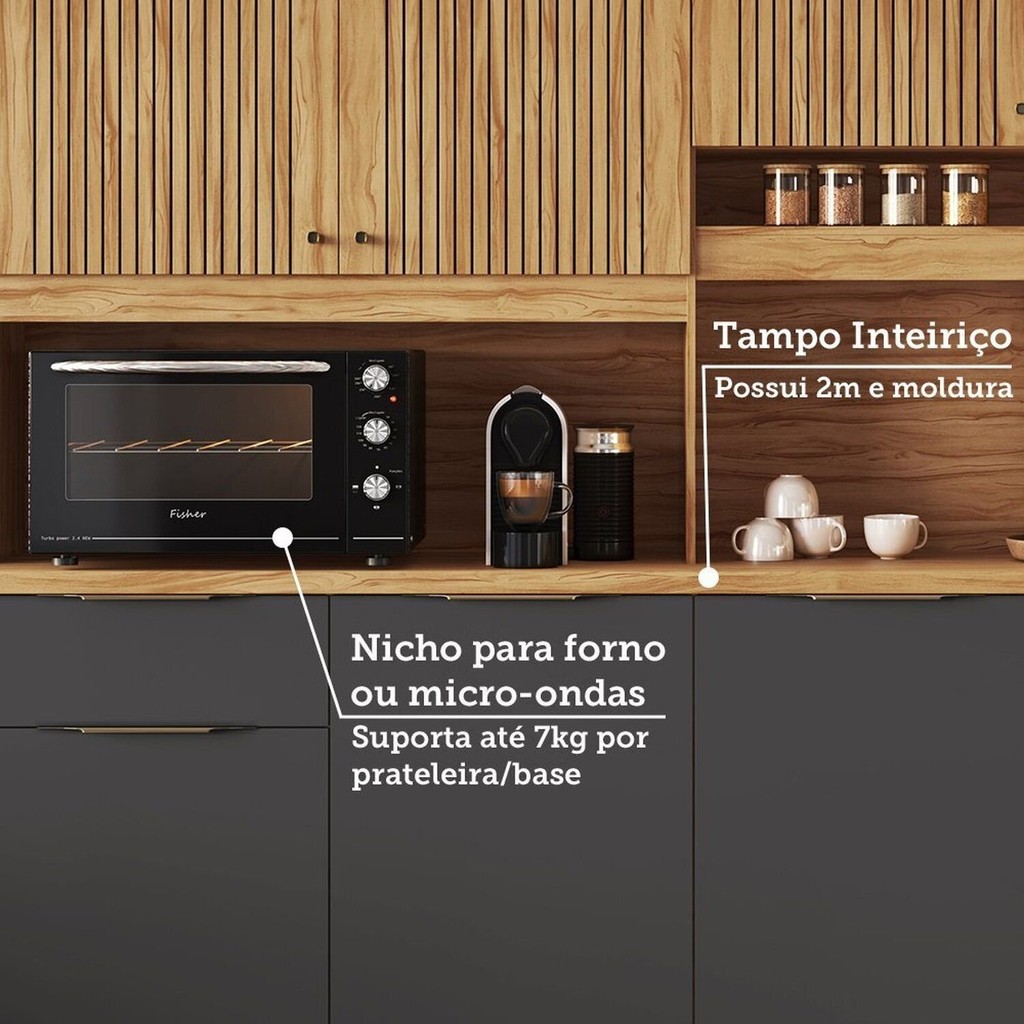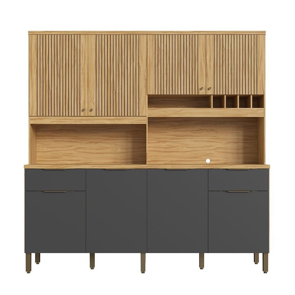 Cozinha Compacta 100% Mdf 8 Portas 2 Gavetas e Mini Adega 200cm Hungria Espresso Móveis Amêndoa/Chumbo