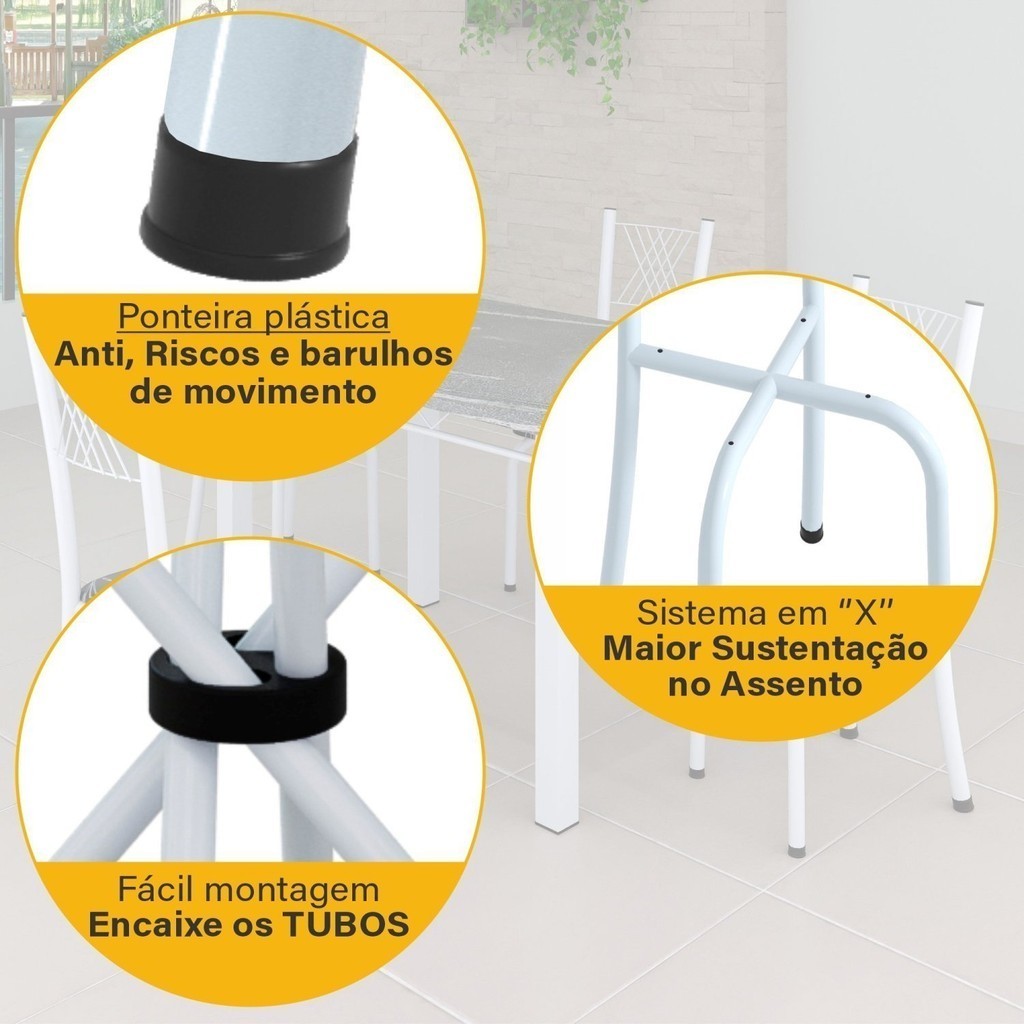 Conjunto de Jantar Mesa Tampo Redondo de Granito Topázio com 4 Cadeiras Sara Yescasa