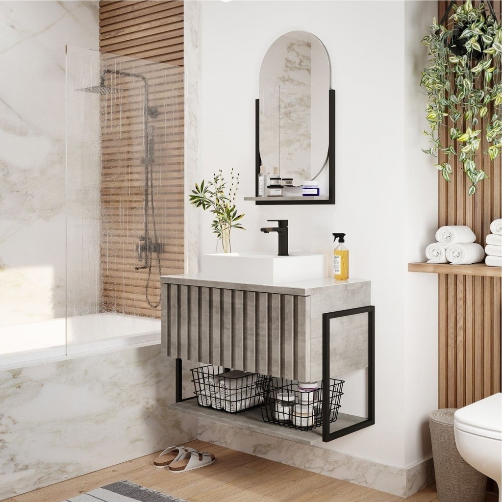 Gabinete para Banheiro com Cuba 65cm MDF Helsing Cimento