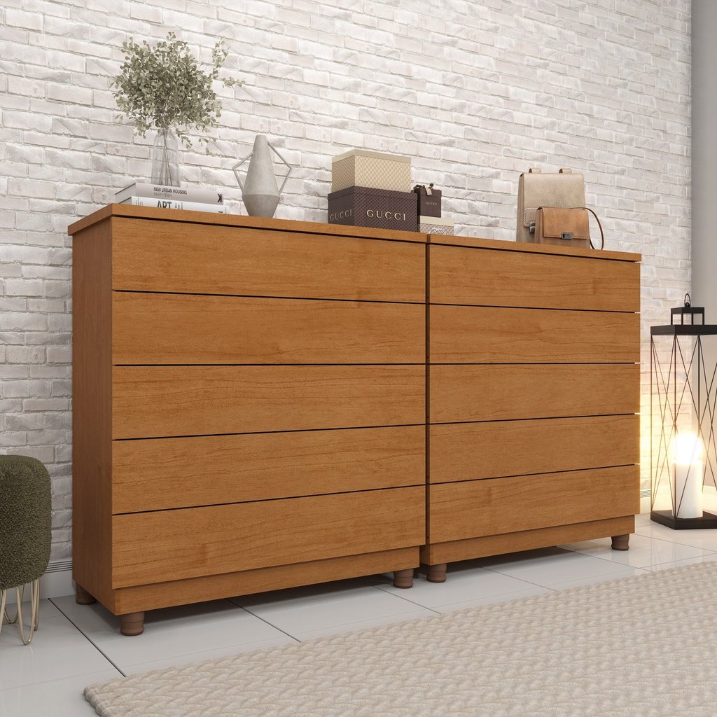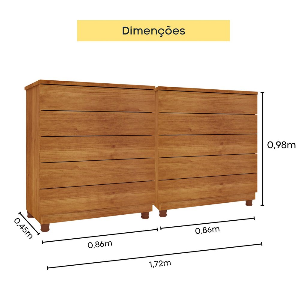 Kit 2 Cômodas 5 Gavetas com Pés Espresso Móveis Cinamomo