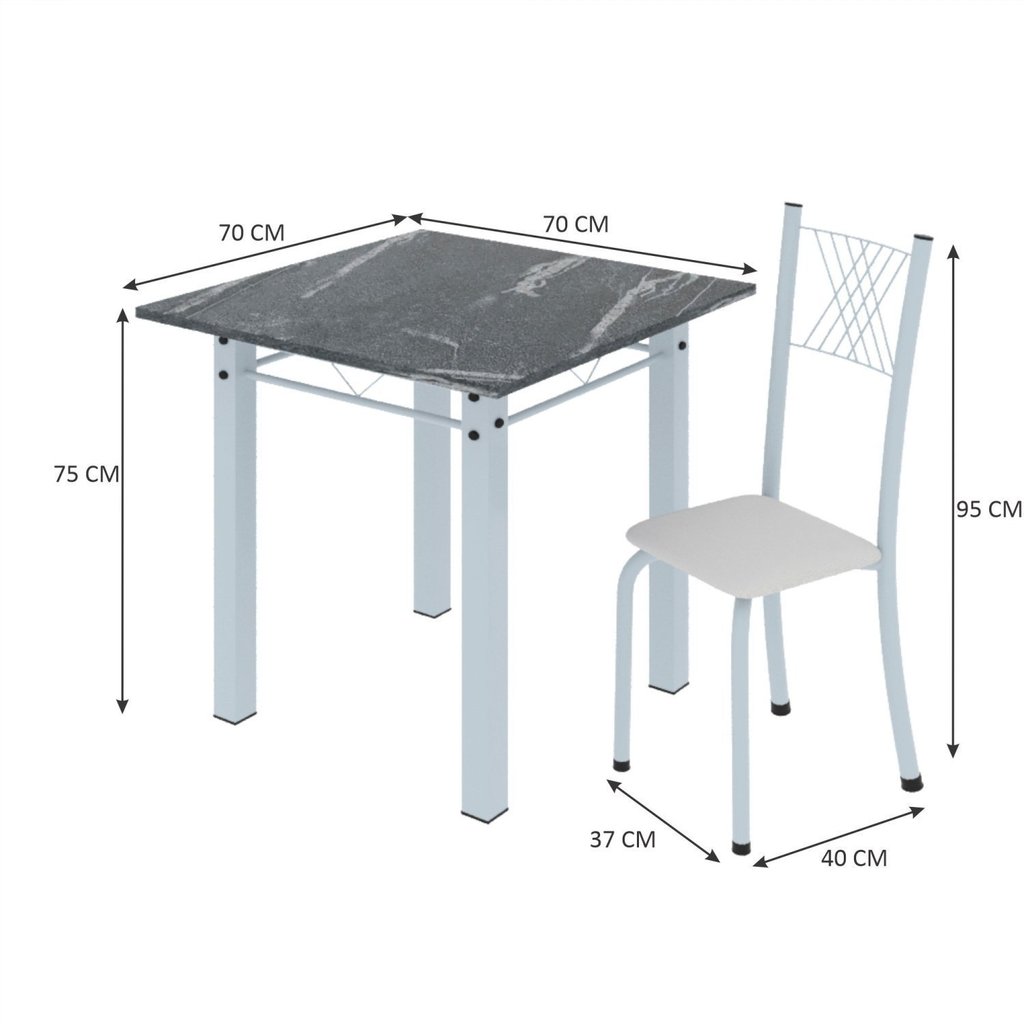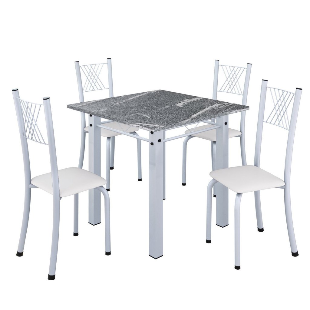 Conjunto de Jantar Mesa 70x70cm Tampo de Granito Topázio com 4 Cadeiras Sara Yescasa Branco Liso