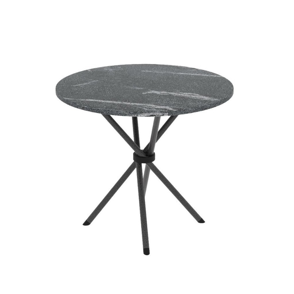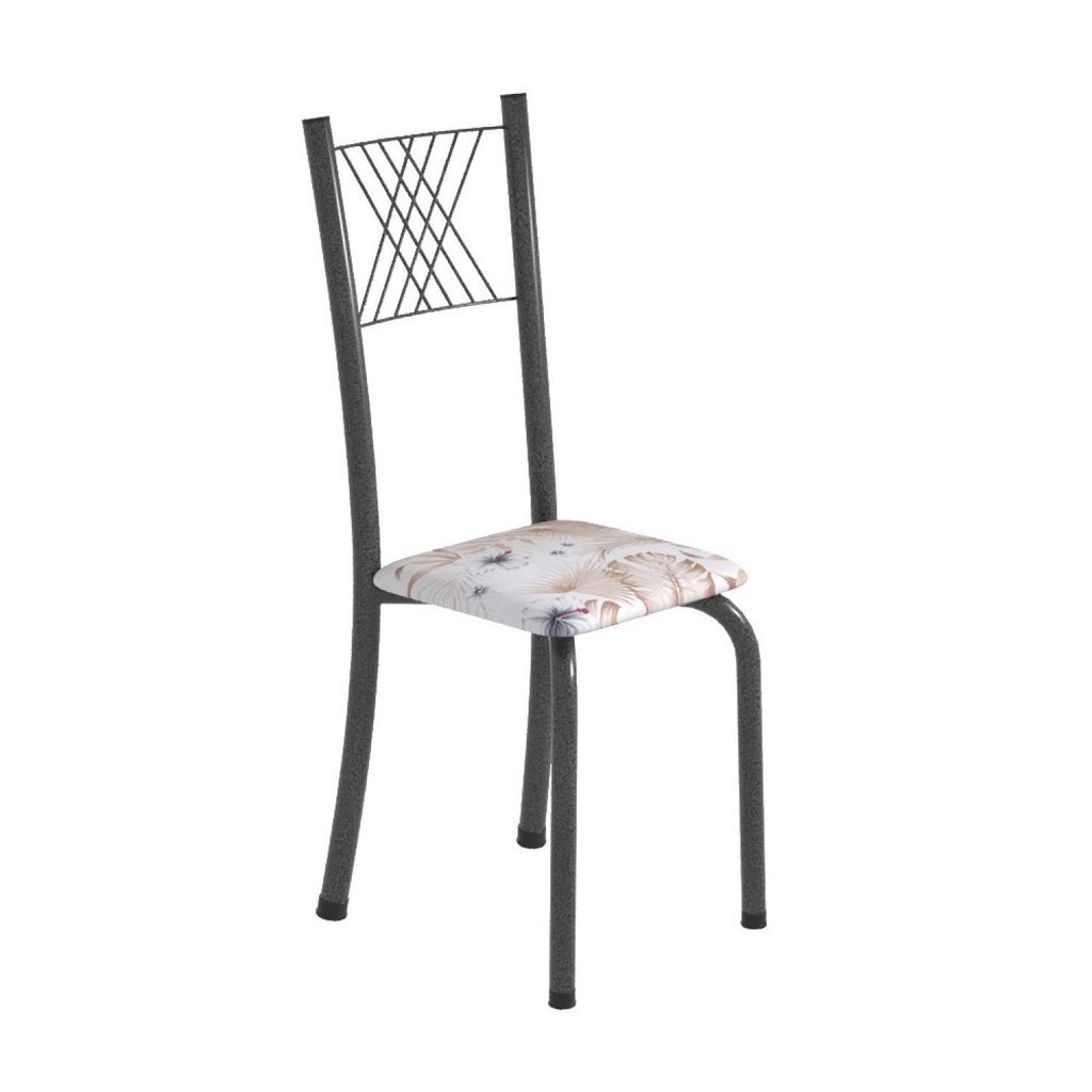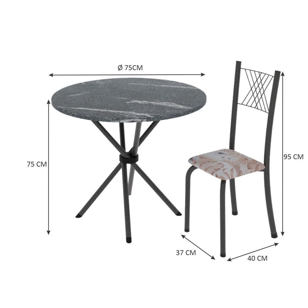 Conjunto de Jantar Mesa Tampo Redondo de Granito Topázio com 4 Cadeiras Sara Yescasa Martelado Prata/Botanic Bege